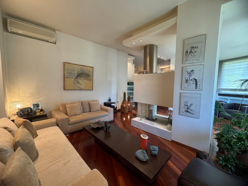 A versatile three-storey villa in the heart of Panorama offering nice views and all modern amenities. Located in the village of Panorama, the most exclusive suburb of Greece's second largest city, Thessaloniki, this 390 sqm villa is set on a verdant plot, offering both privacy and convenience. The villa unfolds over three floors. The ground floor functions as an independent apartment with its own entrance, featuring a living/dining room with a fireplace, a kitchen, one bedroom, and one bathroom...