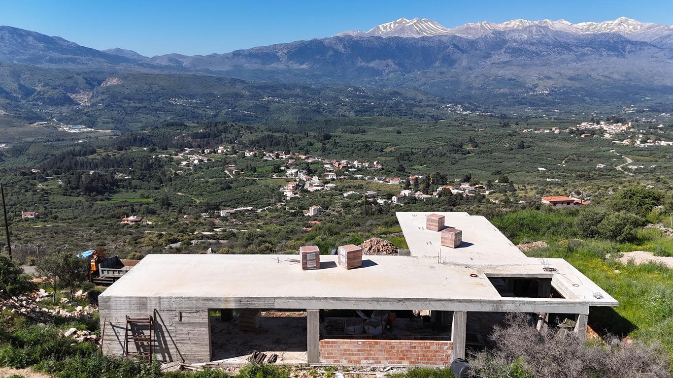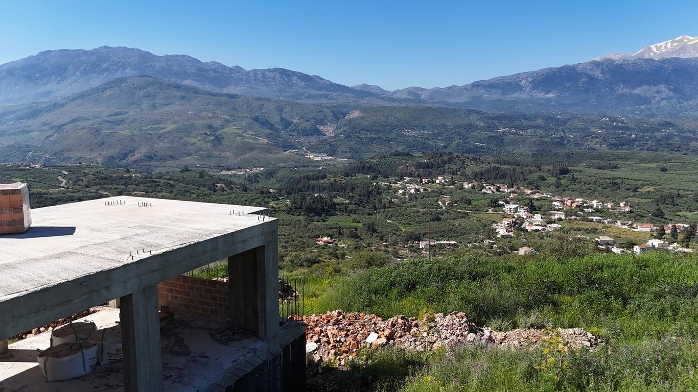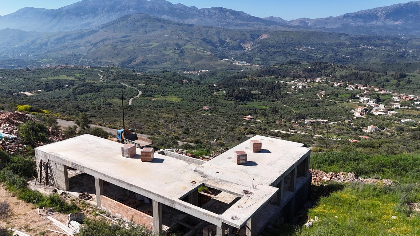 For sale detached house under construction located in the village of Sellia in Apokoronas, set on a spacious plot of 2,590 m2 and enjoying breathtaking panoramic views over the surrounding countryside.The property is currently in the concrete construction stage, as shown in the photos, and is being sold in its present condition, offering the future owner the opportunity to complete the house according to their own preferences and design choices.The existing building permit allows for the constru...