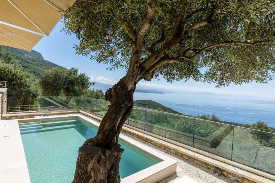Built in 2015, this four-bedroom villa covers 186 m2 on a 750 m2 plot, combining clean design with uninterrupted views over the Ionian Sea. Spread across three levels, the home has been planned to make the most of the natural light and the open surroundings. The main entrance opens into a spacious living area with large glass doors that lead straight out to a wide balcony — the perfect spot to unwind or share an evening meal outdoors. Inside, the open-plan kitchen connects easily with the dining...