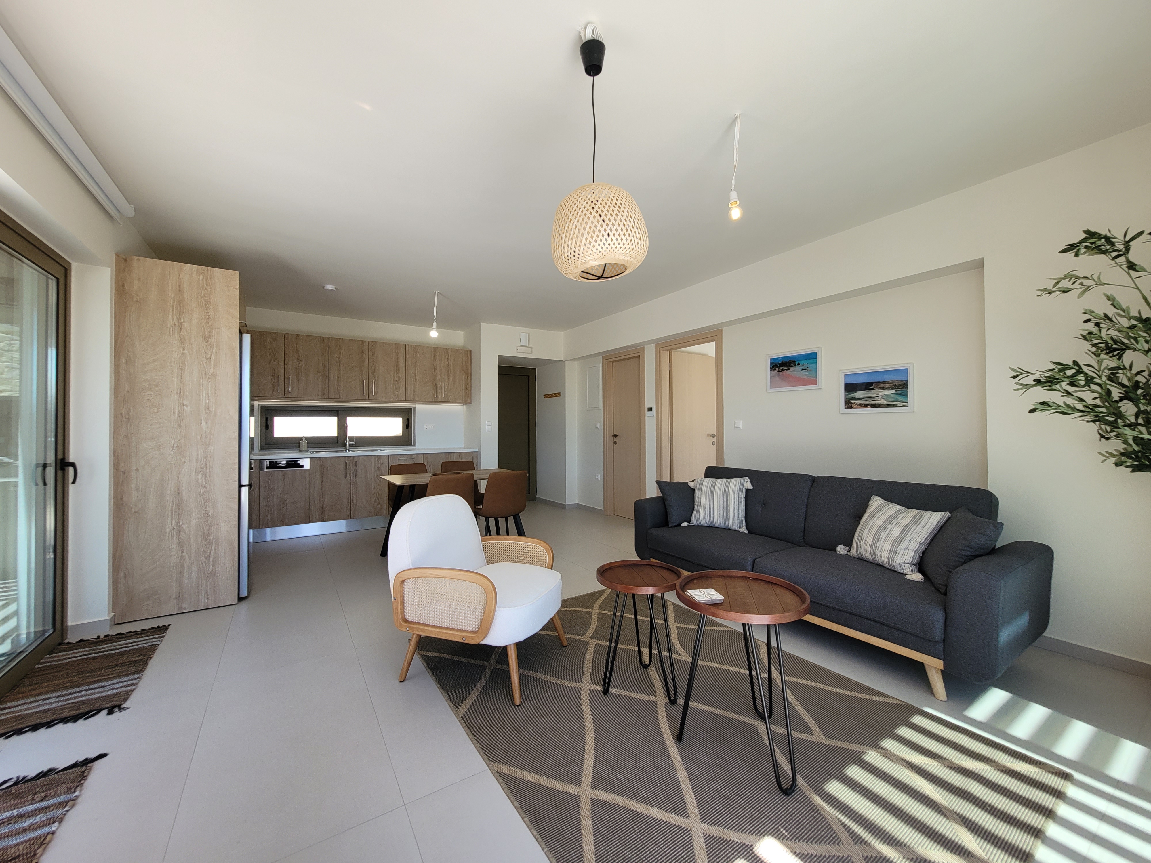 Nestled in the peaceful village of Sternes, just outside Chania, this brand-new 74 sqm villa forms part of an new exclusive boutique development designed for relaxed Mediterranean living, which was delivered in end of 2025.Set on a 202 sqm plot, the villa is thoughtfully arranged on a single level, comprising two distinct volumes connected by a covered terrace, creating a seamless blend of privacy and shared living spaces.The main residence features a bright open-plan living and dining area with...