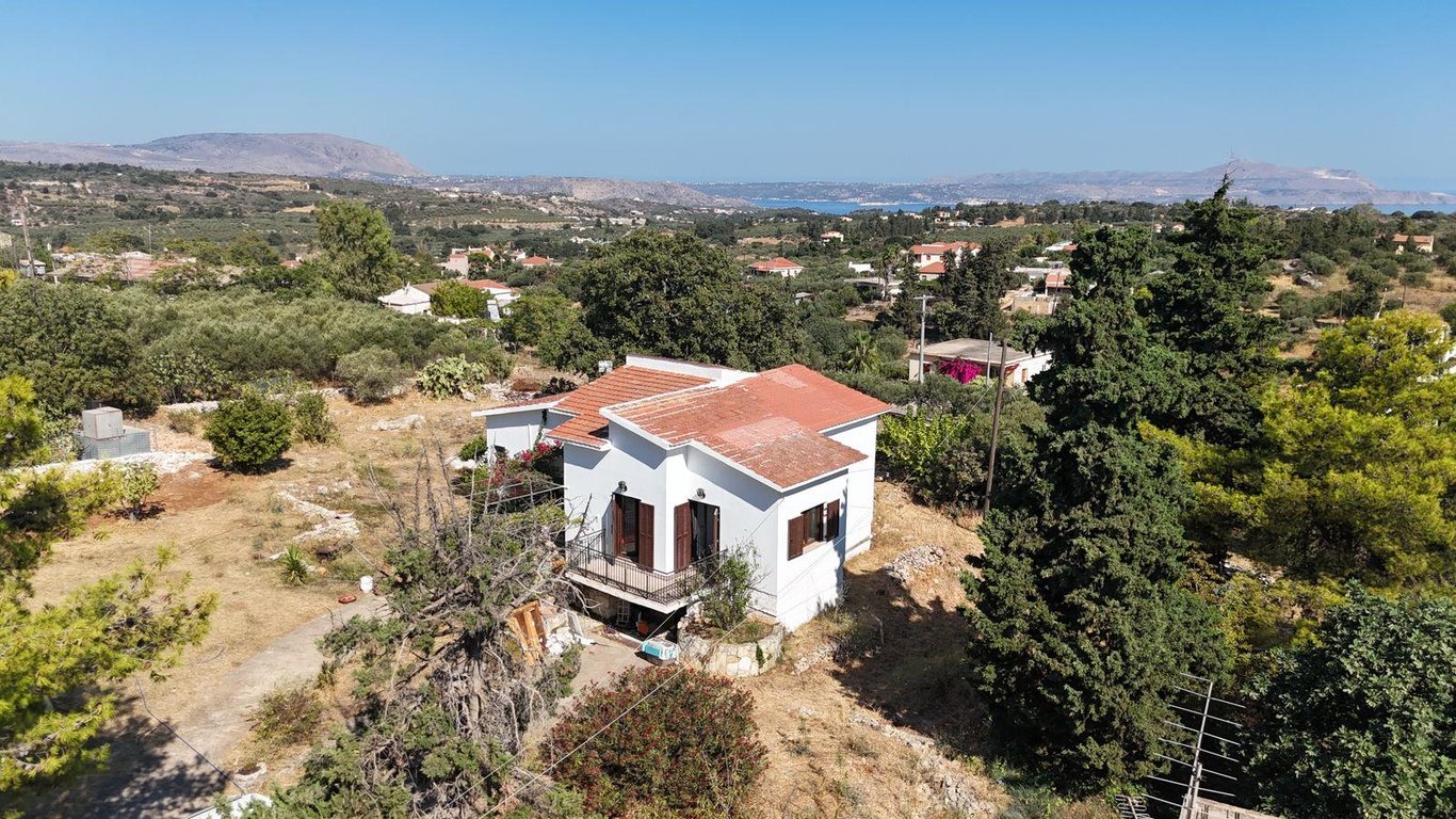 Set on a private 3,004 m2 plot, this well-presented 100 m2 villa offers panoramic views, complete privacy, and excellent potential for further development. Located within walking distance of Vamos village and just 15 minutes from the beaches of Kalives, it is an ideal permanent residence, holiday home, or investment.Property Features* House size: 100 m2 on one level* Plot size: 3,004 m2 with 300 m2 additional building allowance* 2 bedrooms with access to a sunlit veranda* 1 family bathroom + 1 W...