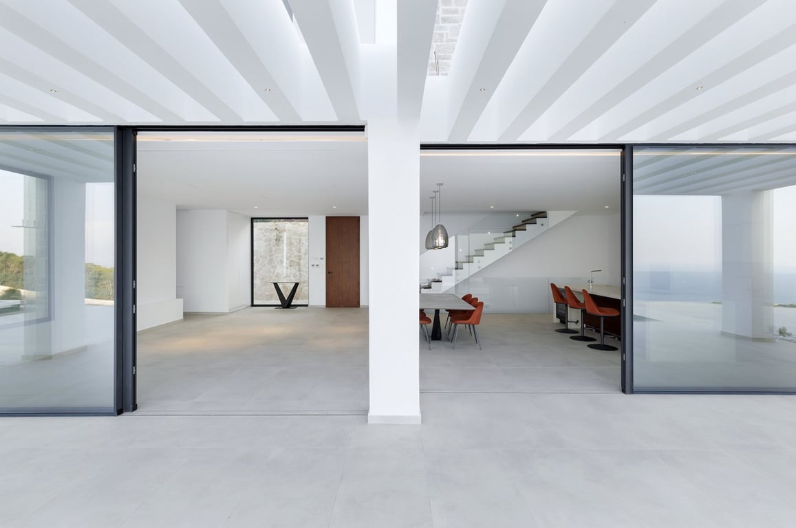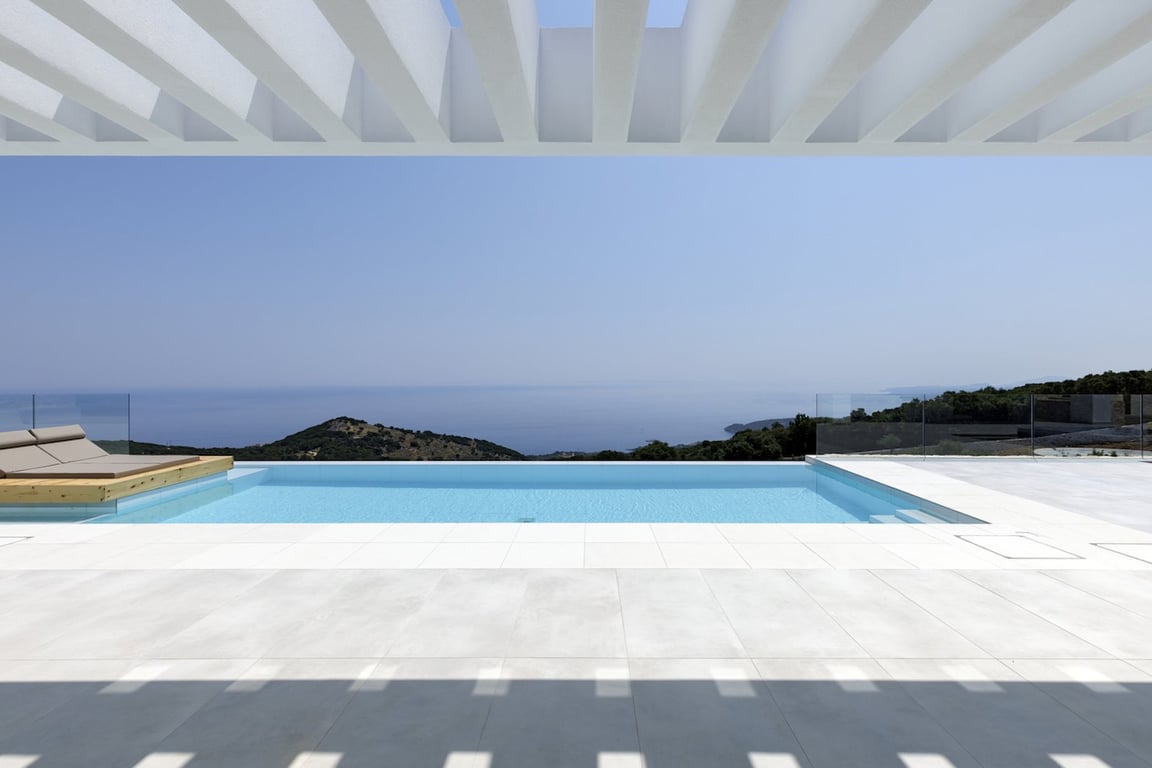 A luxurious newly-built villa nestled between the crystal waters of the Ionian Sea and the captivating landscape of Volimes, Zakynthos. Panoramic sea views, beautifully landscaped grounds and verdant green surroundings make this property one of the very few places on the island where you can be both close to the Zakynthos hotspots and yet also live in perfect isolation. Nestled on a secluded land of 6.492 sqm, the villa showcases a living area of 403 sqm, divided over three levels: Basement (1...