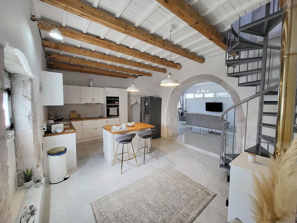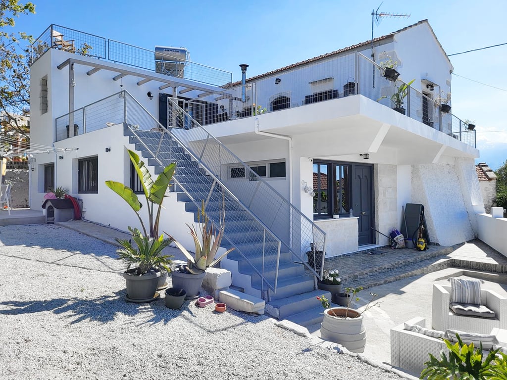 For sale a fully furnished and equipped house of 197 m2 built on a plot of 326 m2. This beautifully unique house has kept many of its tradition features whilst still brining it into modern day living. This unique property has been fully renovated over the last 2 years, all kitchen appliances are less than 2 years old as is kitchen, bathrooms, air conditioning and solar panel. All rooms have central heating for all year round living.External ground floor entrance is gated from the road entering i...