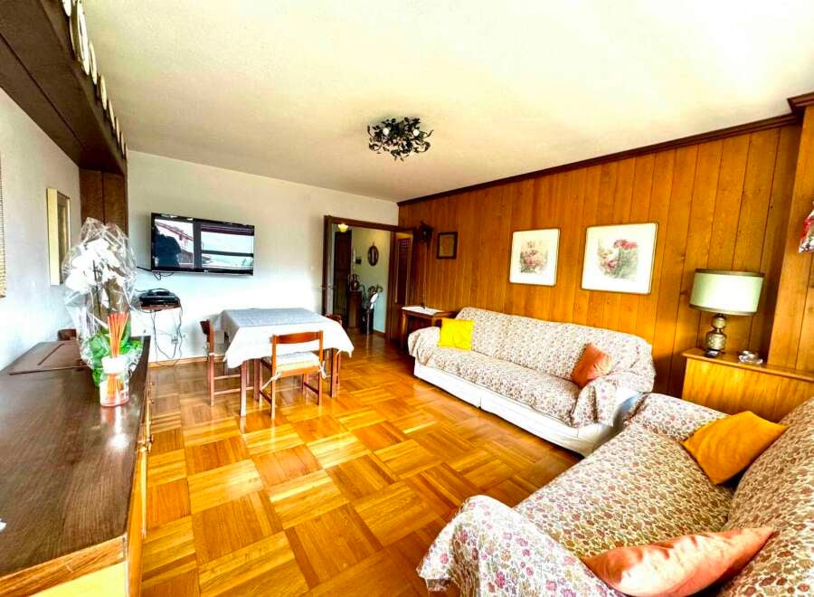 Large and bright apartment for sale at a sunny location at Cortina in the Dolomites Boasting of amazing panoramic views of the mountains, South-West exposure Located at a traditional residential area The property consists of 125 sqm living space on the first floor with 3 bedrooms and 2 bathrooms. It is complemented with additional living space and a bathroom on the ground floor, ideal for friends and family staying over. This home benefits of 1 parking space in the garage, private cella...