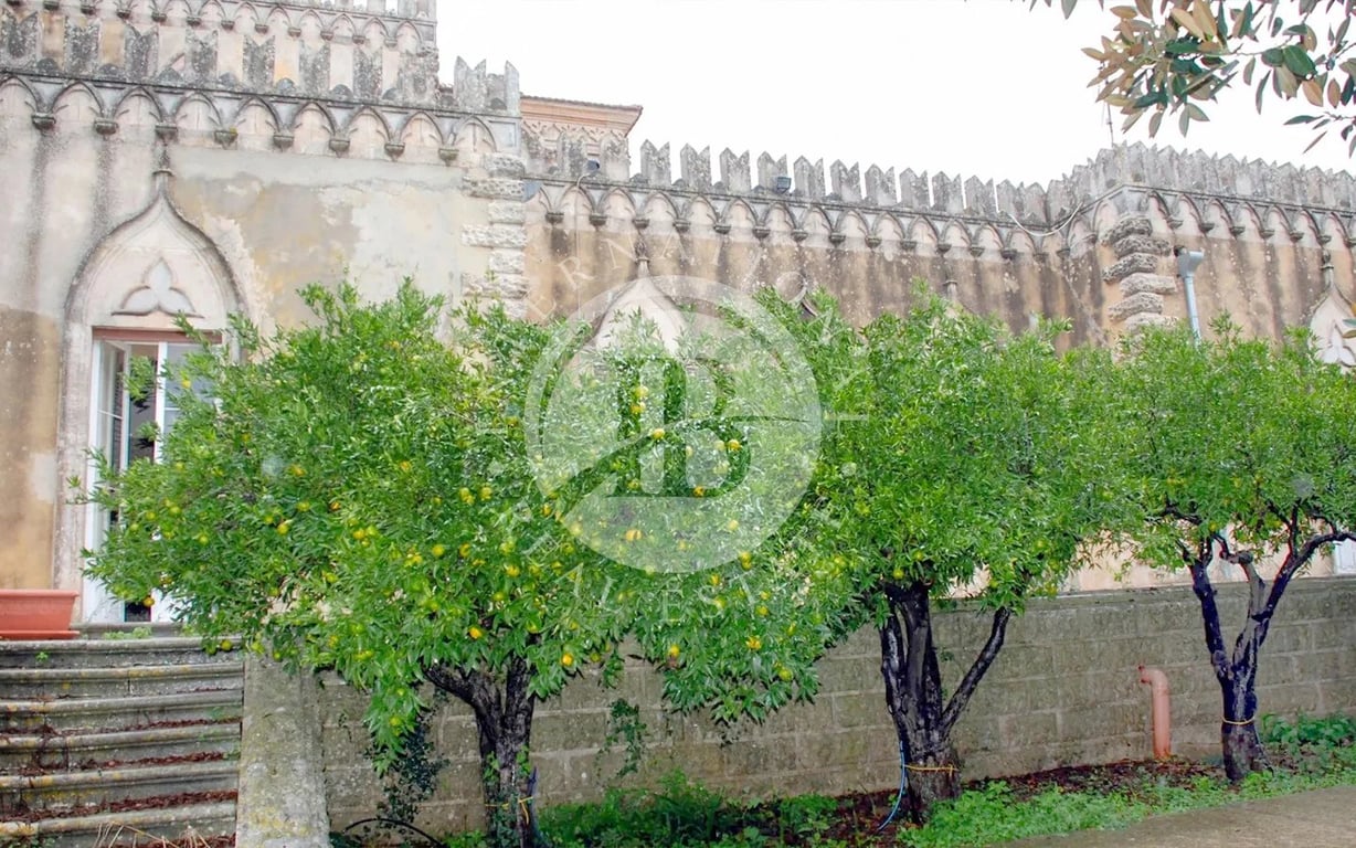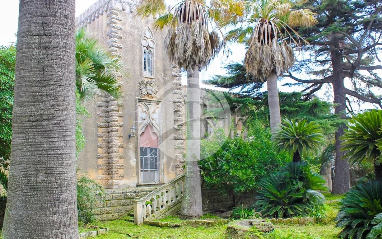 Historic Villa with Eclectic Style and Private Park, Modica, Sicily Designed by the Livorno engineer Carlo Cartier and built between 1896 and 1898, this villa blends Gothic, Renaissance, and Moorish elements. Its tower, arrow slits, rusticated stonework, pointed-arch windows and friezes, as well as the colonnaded loggia, are a testament to the eclecticism that characterized the residences of the wealthy bourgeoisie and nobility in Europe during the second half of the 19th century. The sloping r...