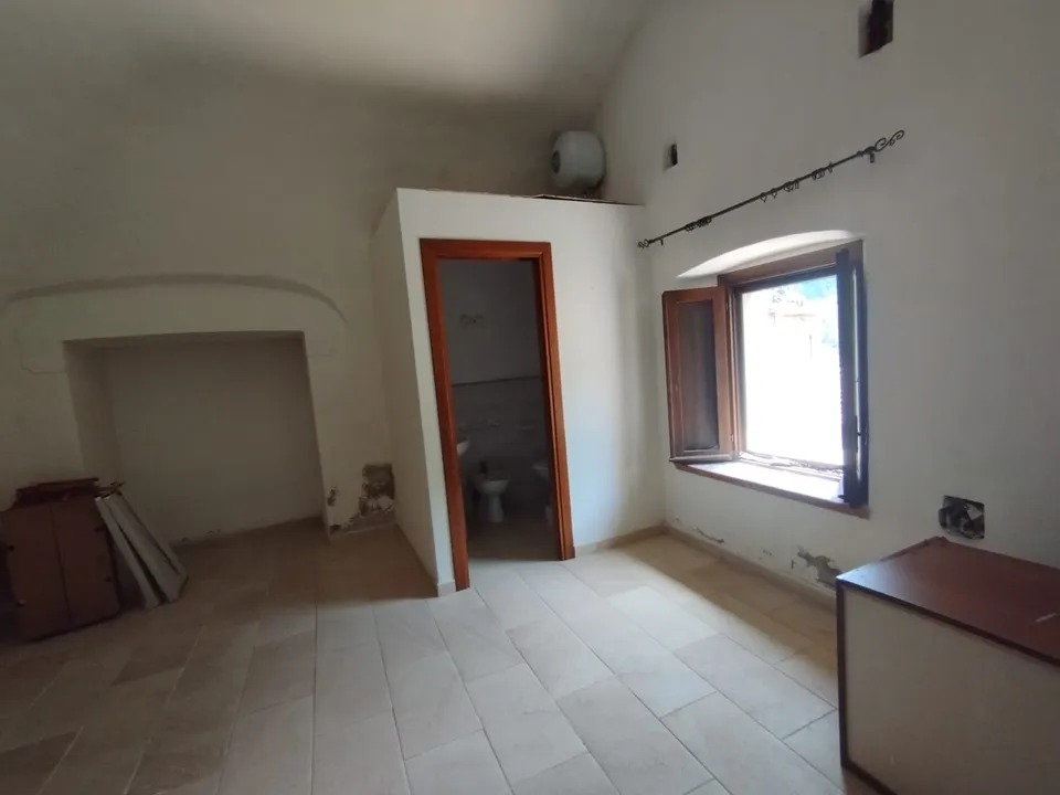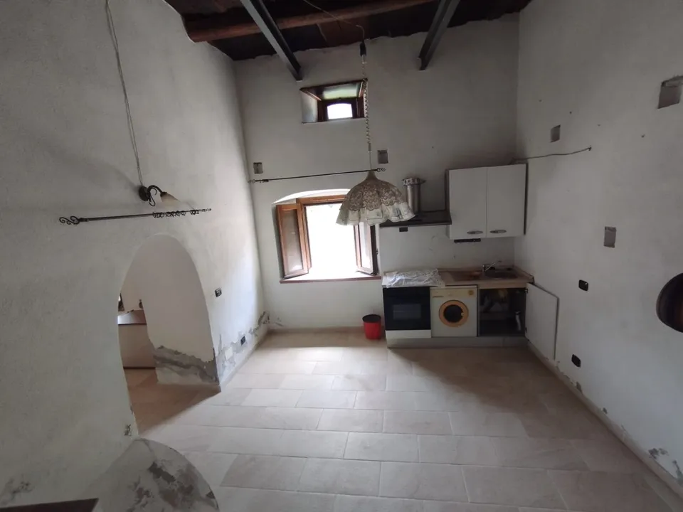 Orsomarso (CS). Historic Center. For sale apartment with mountains view. Basement apartment with private entrance, comprising a spacious living room with kitchenette, ceilings with traditional wooden beams, a large bedroom, and a bathroom with shower. This apartment was once the residence of monks and later converted into an olive oil mill. Today, it has been completely renovated, maintaining its original style with arches and rounded ceilings. This property is less than a minute's walk from th...