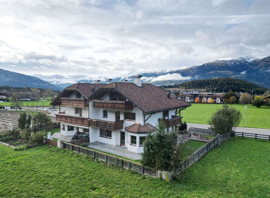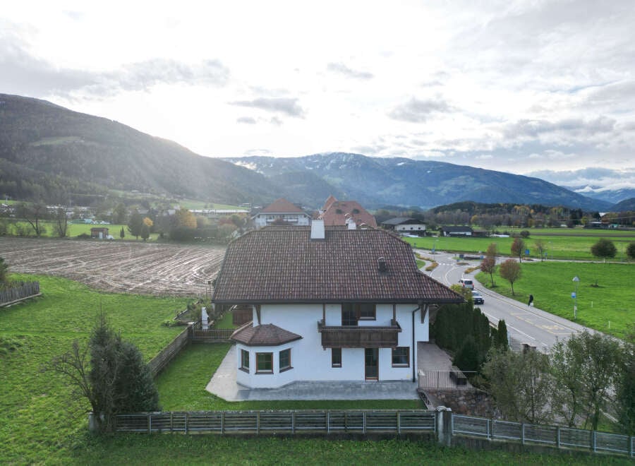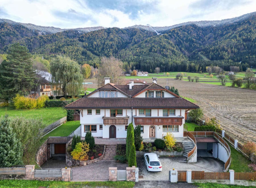 The property is located in Reischach, Bruneck- Brunico, only 250 m from the slopes of Kronplatz- Plan de Corones, a Dolomiti- Superski resort. From here you can start the famous sella ronda in Alta Badia. The chalet is surrounded by meadows on all four sides, on which nothing can be built. It has 4 floors. On Ground Floor you will find an entrance, a kitchen, a living room with traditional corner and dining space, a guest bathroom and a walk-in closet. On first floor there are 3 bedrooms, each w...