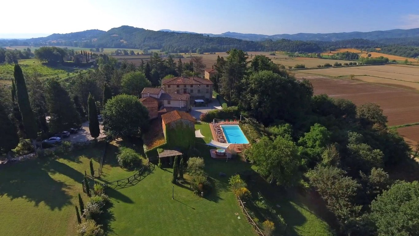 Charming rural hamlet for sale in a dominant and panoramic position just a few kilometres from Anghiari.The property comprises a main villa, two holiday homes with a total of five flats and an annexe to be renovated, covering a total area of approximately 1,600 sqm.The surrounding land offers a large park of almost 8,000 sqm with a swimming pool and approximately 12.8 hectares of agricultural land.The 740 sqm main villa is slightly detached from the other buildings and can be renovated to comple...