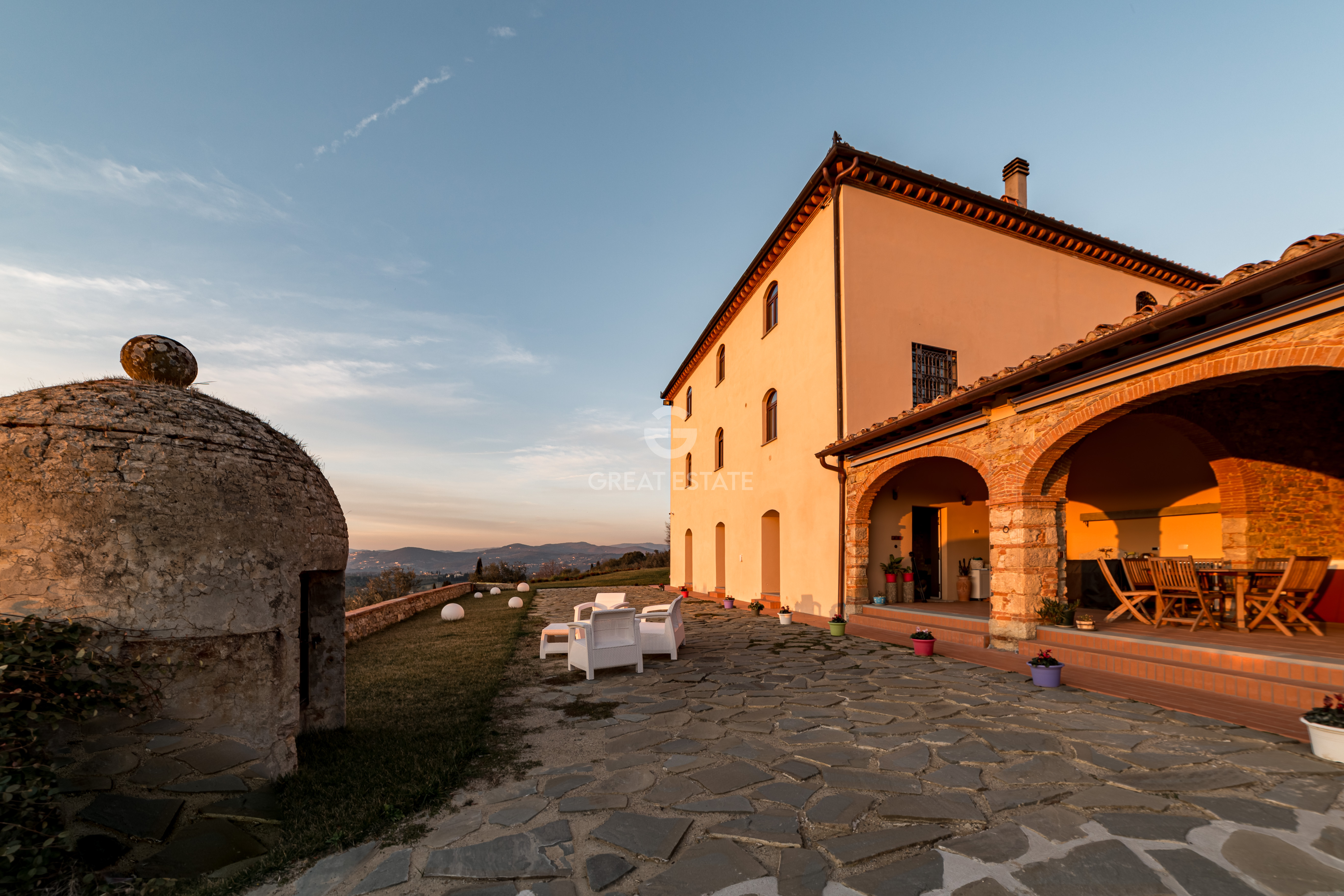 Nestled within the breathtaking landscape of the Florentine hills, this exquisite property stands out: it is a portion of a villa boasting a gross living area of approximately 330 sqm spread over two levels, thoughtfully designed as follows: on the ground floor, an expansive living area features a three-sided fireplace and a corner sofa, perfect for enjoying moments of rest, relaxation, or entertaining guests; continuing, there is a kitchen with a dining area, a cellar room, two bedrooms (one wi...