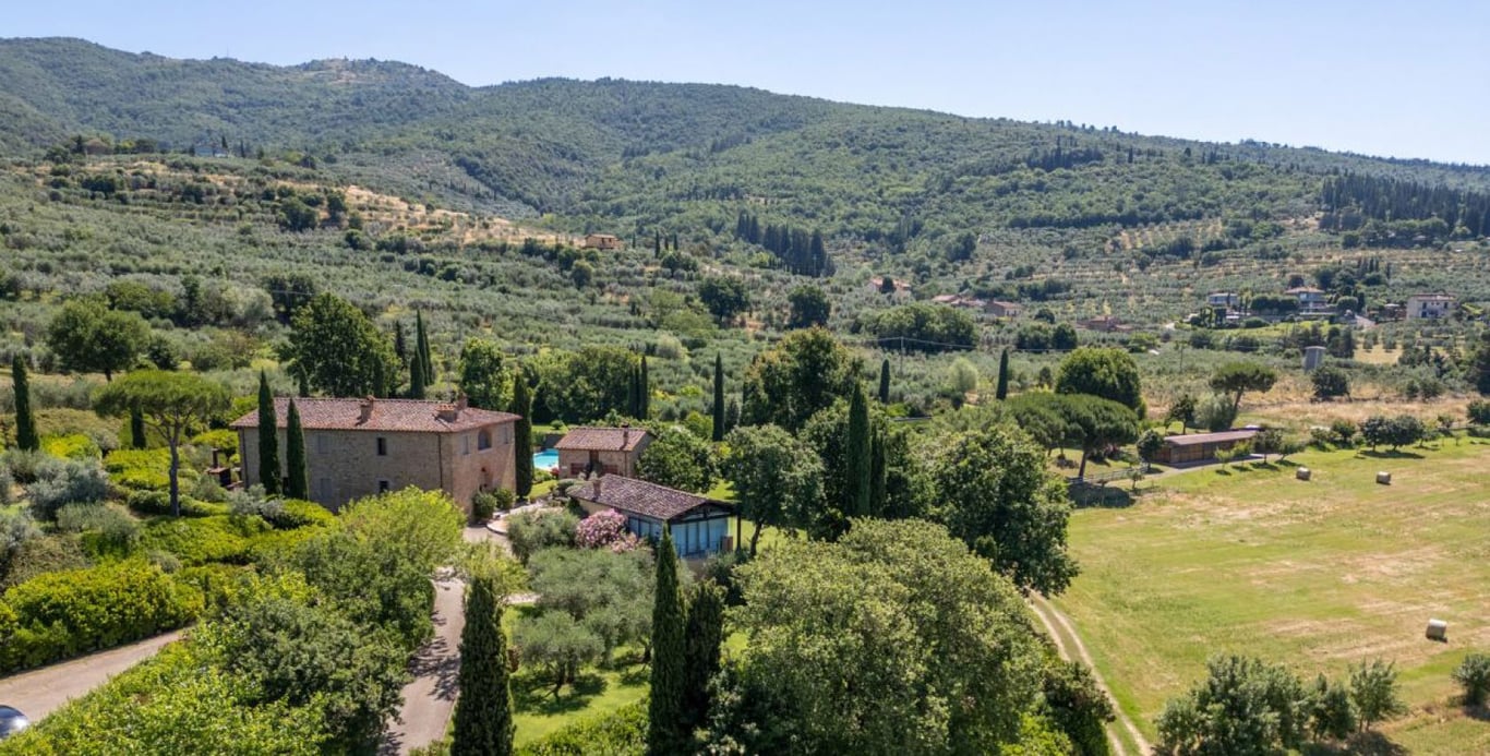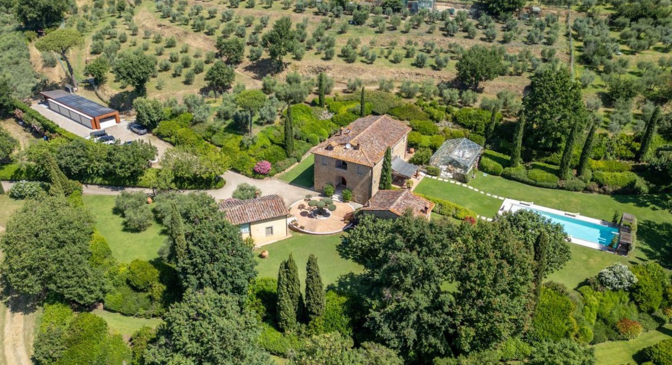 Luxury villa with agricultural land and olive grove, for sale in a beautiful hillside location just a few kilometres from Arezzo.This exclusive property, which covers a total area of 1,000 sqm, is perfectly suited both as a private residence and as a property with high income potential.The main villa of 399 sqm, on two floors and entirely in stone, has been renovated with a skilful balance between traditional charm and modern comfort.The ground floor houses a large living room with porch, a dini...