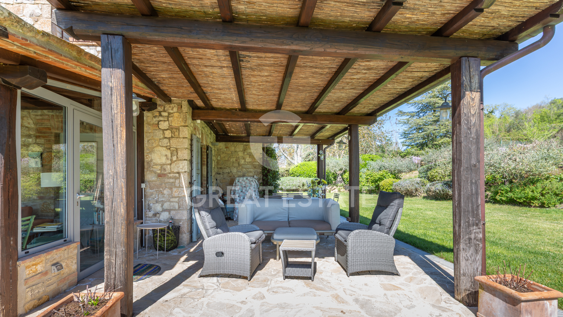Ginestra is a prestigious semi-detached farmhouse for sale in Umbria, set within an exclusive fully fenced estate, meticulously maintained, a hidden and refined oasis among the enchanting Umbrian hills; the blooming gardens, charming pathways, stone walls, peaceful atmosphere, and sweeping hillside views make this place a true Eden. There is a fabulous shared swimming pool, surrounded by generous sunbathing areas and loungers. The property also features a tennis court, a communal vegetable g...