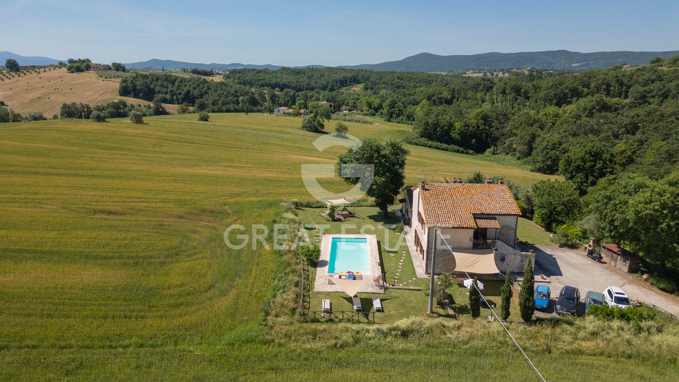 This charming farmhouse is nestled in the hills between Todi and Amelia, offering complete privacy and tranquility. The property was carefully restored in the 1990s and spans over two floors, covering approximately 307 sqm, with a 1,605 sqm plot of land that includes an orchard and a well-maintained surrounding green area. The private entrance leads into a secluded and protected space, perfect for those seeking a retreat amid the open countryside of Umbria. Outside, the highlight is undoubtedly ...