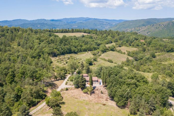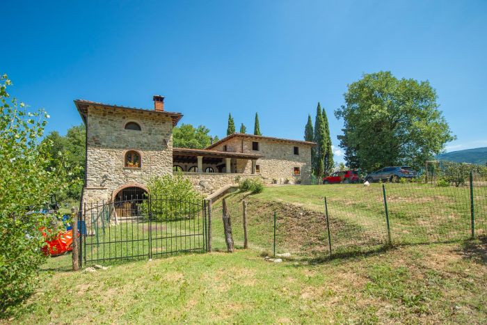 Description Renovated farmhouse located just outside a village in the Casentino area, in a very comfortable, open and sunny position. The building (258 sq m) includes the owner’s house and a nice studio apartment in the tower, very suitable for guests, for a total of 5 bedrooms and 4 bathrooms. Outside, the house is surrounded by a 2,000 m2 fenced garden plus 11 hectares of land on which a small vineyard has also been planted with 1,200 plants of the Sangiovese, Malvasia Nera and Syrah varieties...