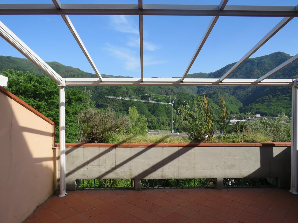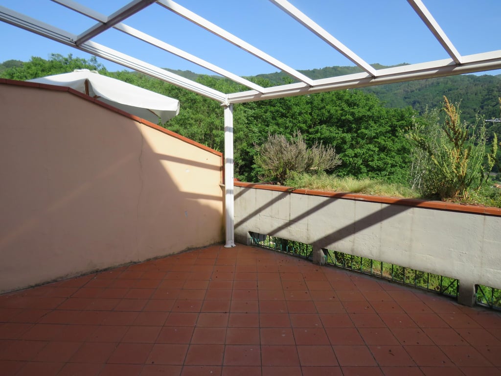 Terraced Villa with garden large panoramic terrace and garage in Borgo a Mozzano. Gas central heating. Views overlooking the Serchio River and green hills. Ground Floor - Large Lounge Fully equipped kitchen/dining area with door leading large terrace. 1 Bathroom Upper Floor - 2 Double Bedrooms, 1 single bedroom 1 Bathroom Large terrace Lower Floor – Garage Laundry Room Boiler Room Bathroom Tavern Distances To (approx) Airport (Pisa) – 40km Lucca – 20km Coast (For...