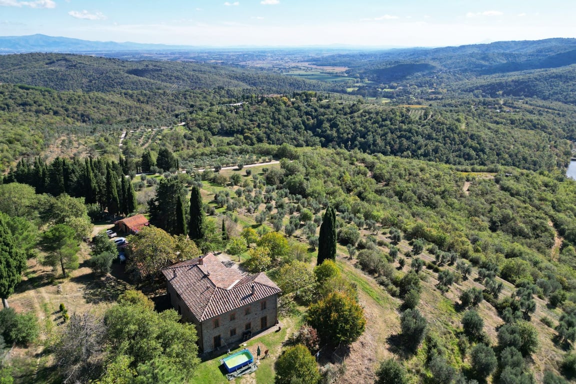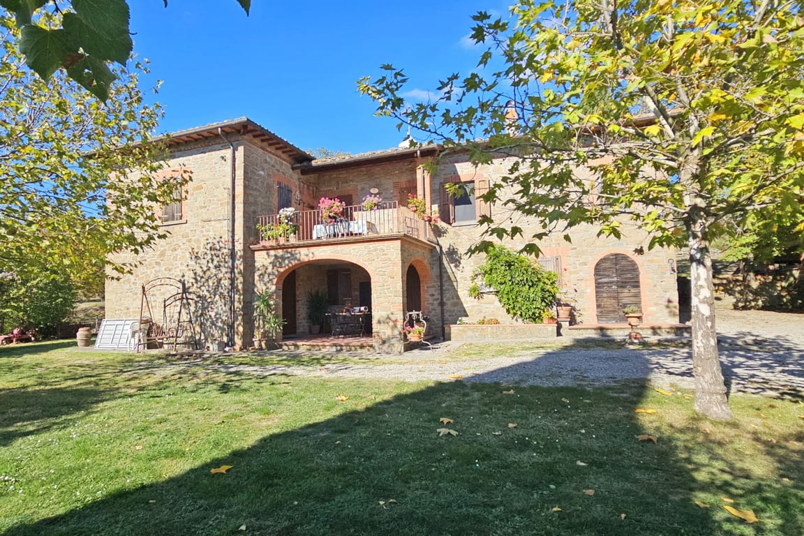 Nestled in the green embrace of the Tuscan hills, between the towns of Civitella in Val di Chiana and Bucine, this splendid farmhouse for sale represents the perfect combination of rustic charm and contemporary comfort.The rustic 17th-century farmhouse, skilfully renovated in full respect of its original features, is an authentic example of Tuscan style with exposed pietra serena stone, antique wooden beams and red terracotta floors.Access to the property is majestic and spectacular, thanks to a...