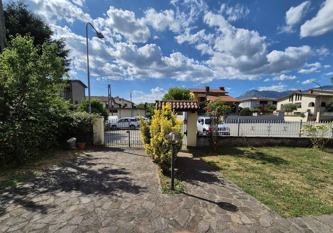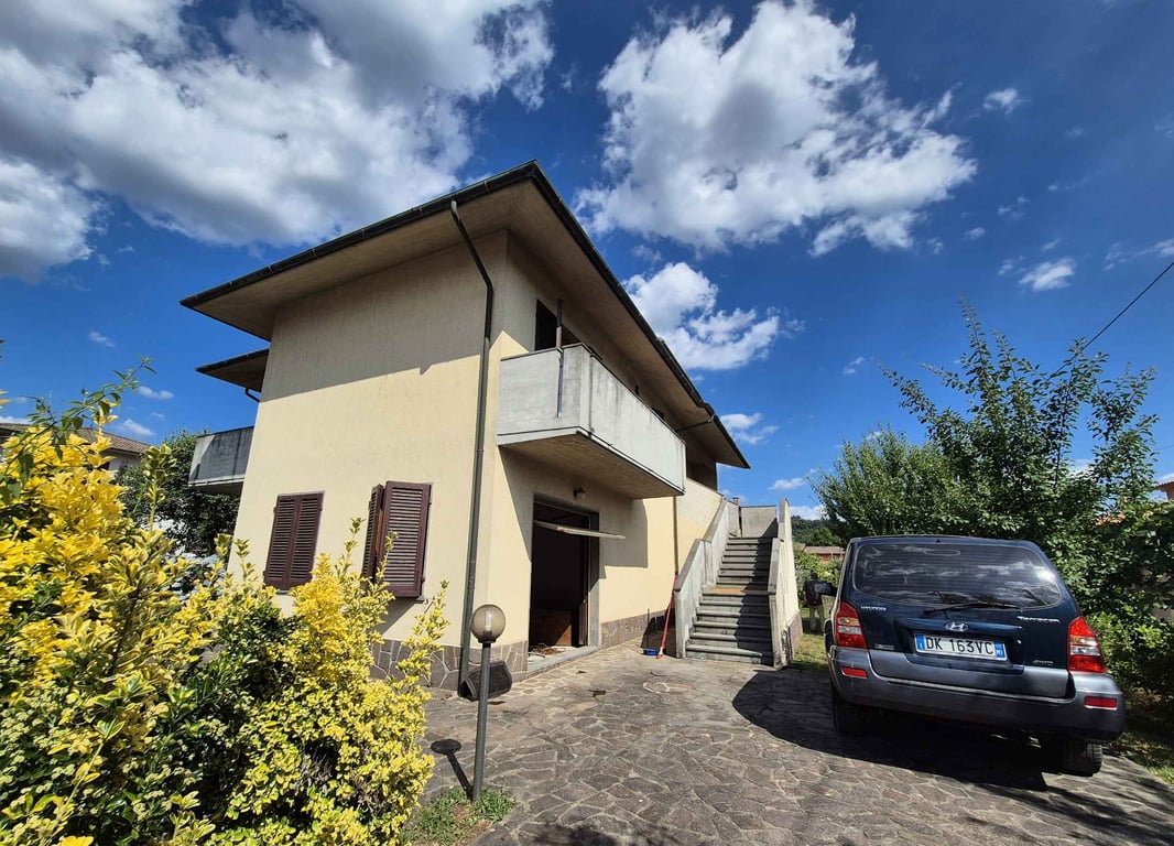 The villa is located in the outskirts of Castelnuovo Garfagnana. Entrance to the villa through a gate into the fully fenced garden. The three-level property comprises an unfinished Apartment on the Ground level including Garage. There is a outdoor Staircase and Balcony from the Garden, for access to the first floor. First Floor Entrance Corridor 1 Living / Dining Room with Fireplace and door to the Balcony. 1 Dining Kitchen 2 Double Bedrooms with Balcony 1 Bedroom 2 Bathrooms one with Tub 1 a...