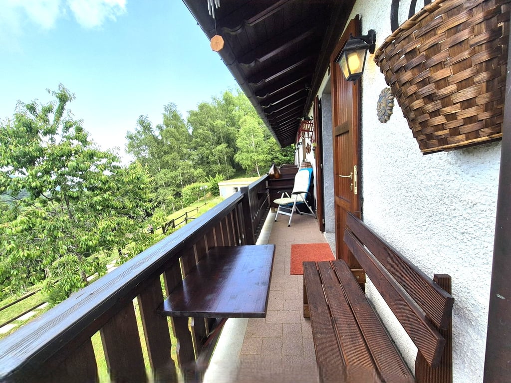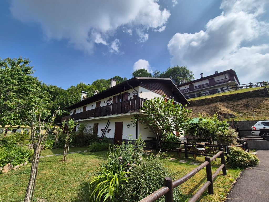 First floor apartment , quality fittings and with private garden Access with staircase from Garden to balcony with beautiful view of the Apuam marble mountains. Extra adjoning land with fruit trees in common with the other apartments. Tools shed ouside. Good quality furniture is Included. Walking distance to small ski resort and restaurants. Private Parking Space. Entrance to the apartment. Open plan Kitchen/Living /Dining Room with Fireplace and a double sofa bed 1 Double Bedroom 1 Bathroom ...