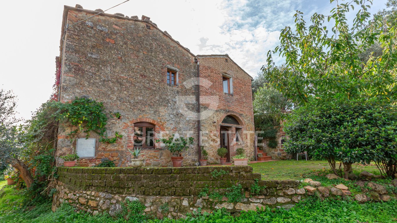 This two-level portion of the rustic farmhouse is divided into two charming separate apartments. The ground floor apartment is accessible via a small and picturesque courtyard that leads you into the house, where you'll find a living room with kitchenette, a bedroom, and a bathroom. To reach the first-floor apartment, you walk along a small ridge that leads to a courtyard from where, passing through a loggia, you enter a beautiful living room featuring a marvellous fireplace. A corridor takes yo...