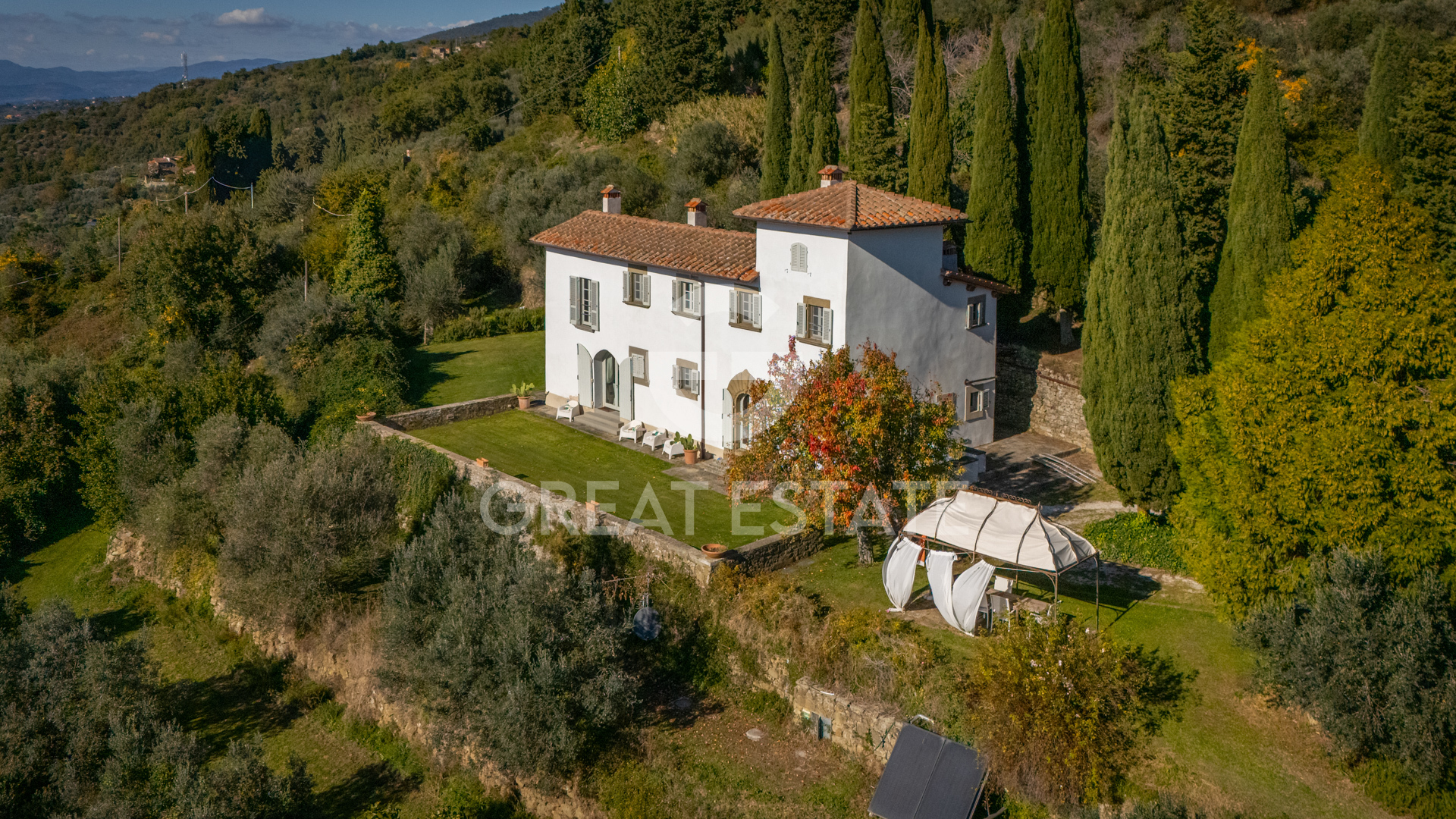 This spectacular villa with swimming pool, located in a panoramic position, is easily accessible via a short white road. The property is spread over three levels. On the ground floor, there is a modern kitchen with dining area, a large living room with a stone fireplace, a study, and a bedroom also equipped with a fireplace. The first floor includes another living area with sofas and a fireplace, a master bedroom with en-suite bathroom, and another bedroom with bathroom. The third level consists...