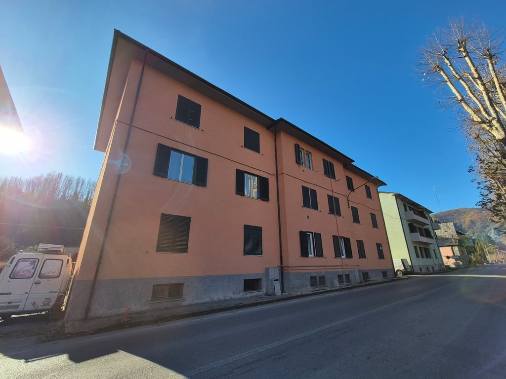 Third floor apartment situated at the edge of the market town of Castelnuovo di Garfagnana only 300m from town centre. Luminous Apartment on the Third Floor of a Condominium 1 Entrance Corridor 1 Large Dining Kitchen with Fireplace 1 Double Bedroom 1 Small Bedroom /Study 1 Bathroom with Tub Ground Level 1 Cellar 1 Common Laundry Room 1 Garage Box 1 Parking Space Distances: Lucca - 39km Pisa - 60 km Florence - 110km