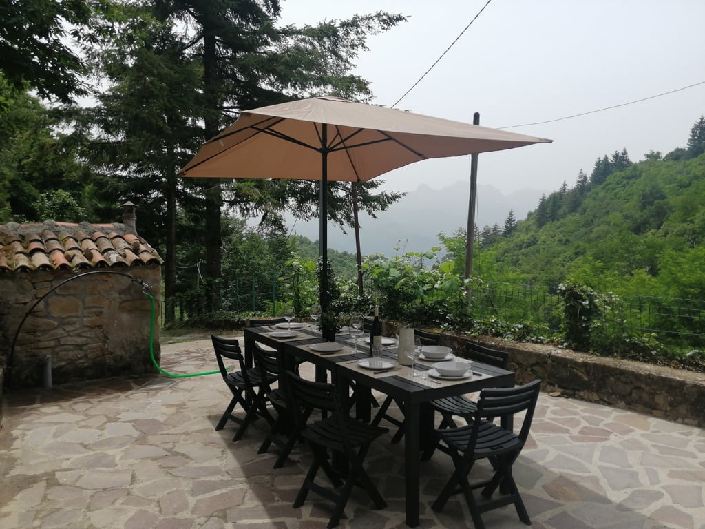 Beautiful detached traditional stone farmhouse with outbuildings in a very sunny spot close to Chiozza village. Views over surrounding area and Apuan Alps. Close to “La Sponda” (“Riverbank”) stream, which can be heard flowing by. The farmhouse (180 sqm) is in very good structural condition and has central heating. The roof was renewed a few years ago and is well insulated. Built over 3 levels, it is laid out as follows- Ground floor – large reception with open fire (30 sqm), dining kitchen (26...