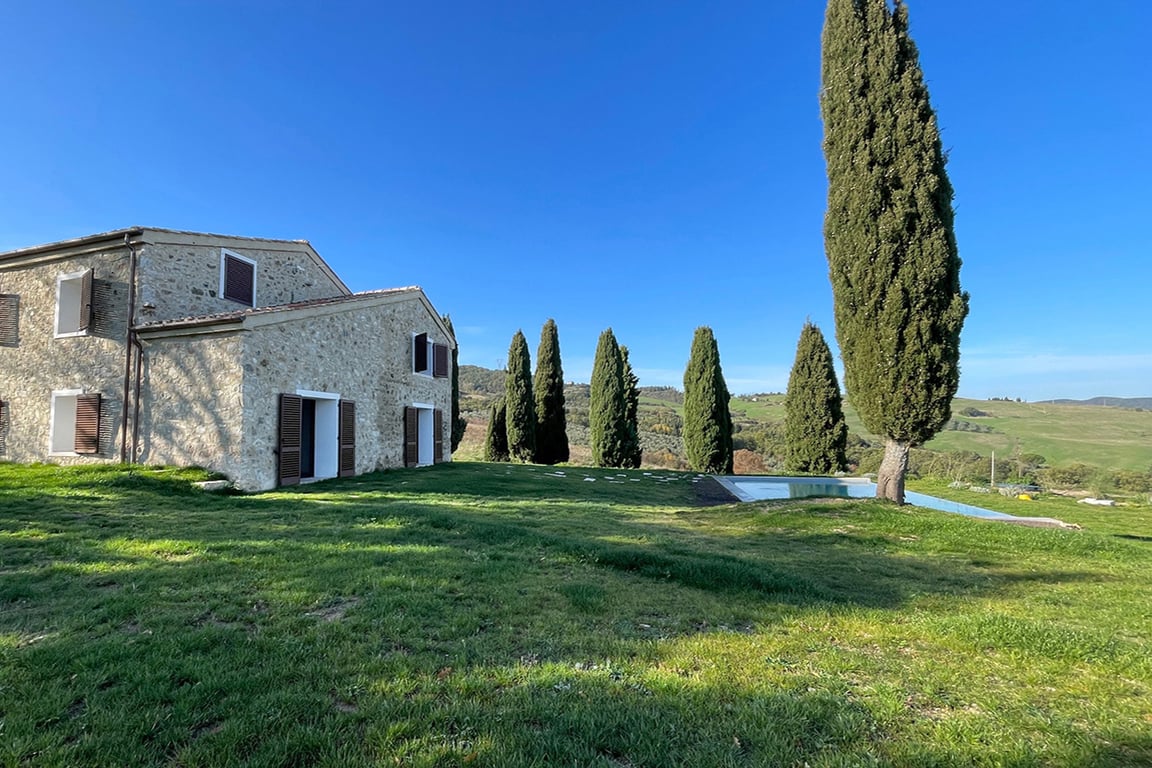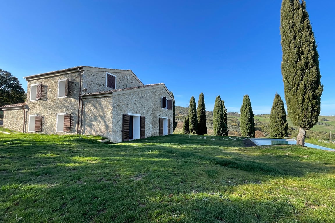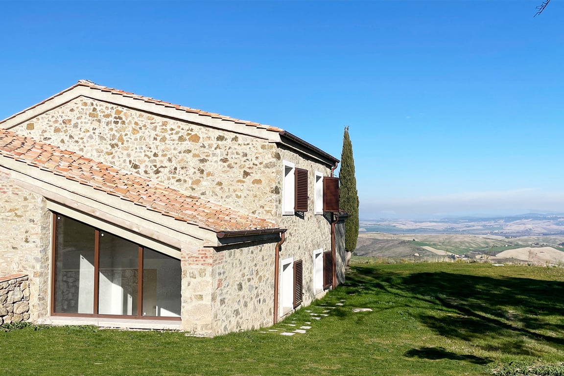 RENOVATED FARMHOUSE WITH BREATHTAKING VIEWS OVER VAL D’ORCIA, PIENZA, SIENA, TUSCANY MDI_R245 This beautiful property is located in a commanding position with panoramic views over the Val d\'Orcia, near Campiglia d\'Orcia. The property includes a two-level farmhouse, currently in the final stages of renovation, an annex used as a technical room, and a 14x4 carport, above which is a 10 kWh photovoltaic system. On the ground floor, the home features a spacious living room with an open-plan kitchen...