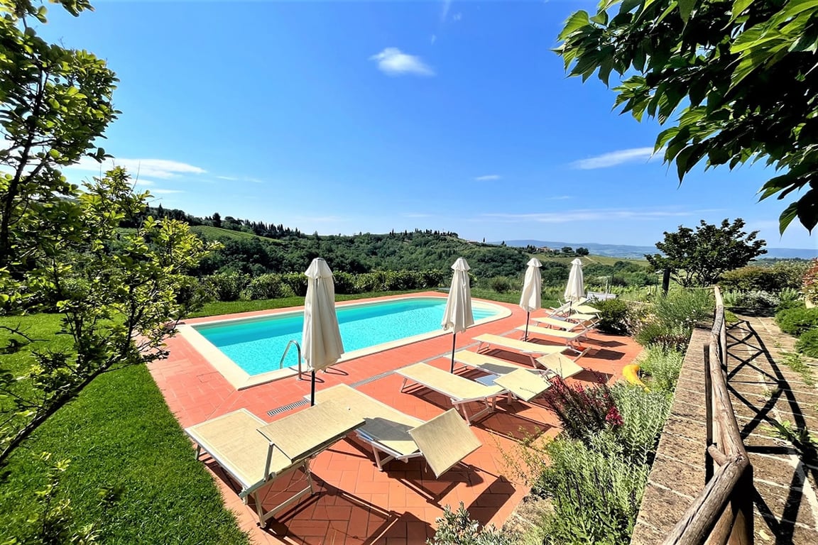 EXQUISITE 6 BDR COUNTRY HOUSE WITH SWIMMING POOL, CERTALDO, FLORENCE, TUSCANY MDI_C1583 We offer for sale a beautiful property in the first countryside of Certaldo, about 8 km from the town centre, in an enchanting position with breathtaking views over the surrounding countryside. This charming property consists of a former farm building, completely rebuilt in 2006, surrounded by a large garden on 4 sides and a swimming pool. The building measures approximately 360 sqm on two floors, plus a furt...
