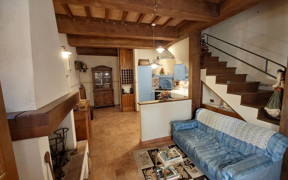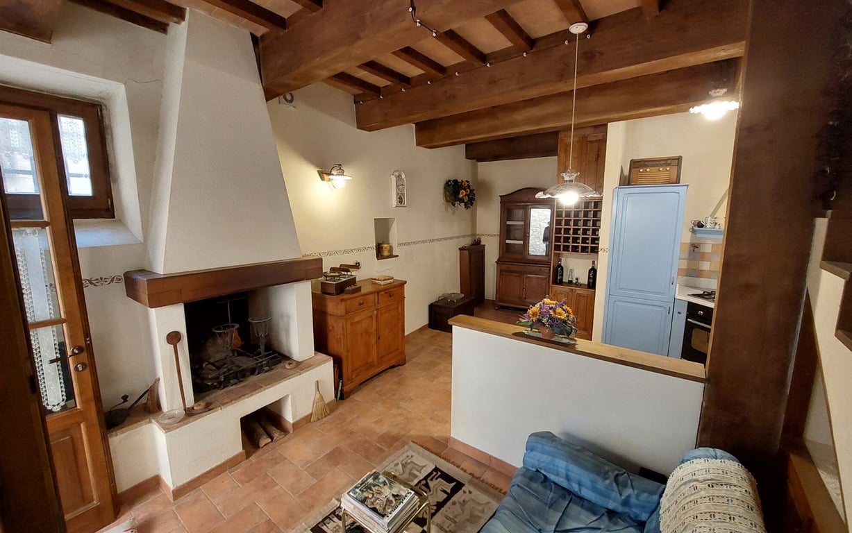 In the historical centre of the beautiful town of Cetona, lovely townhouse with grotto.The property, the result of an authentic conservative restoration in compliance with earthquake regulations, is arranged on two levels divided as follows:Ground floor: living room with fireplace, kitchenette and bathroom. From the living room there is access to the suggestive cave dug into the rock;First floor: hallway-study, double bedroom and bathroom.Double access to the two floors. Independent methane heat...