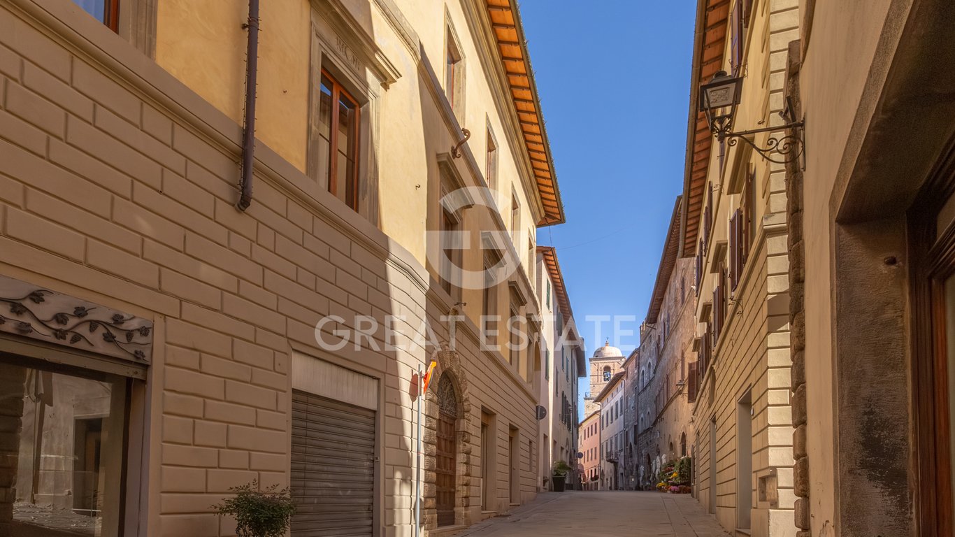 In the heart of the historic center of Chiusi (SI), a charming village with Etruscan origins, this elegant apartment of approximately 340 sqm occupies the noble floor of an ancient palace, preserving all the charm and nobility of its era. A place where history and everyday life meet in perfect harmony: spacious rooms, high wooden coffered ceilings with original paintings, natural light filtering through large windows, and enchanting views over historic buildings and the village rooftops. The a...