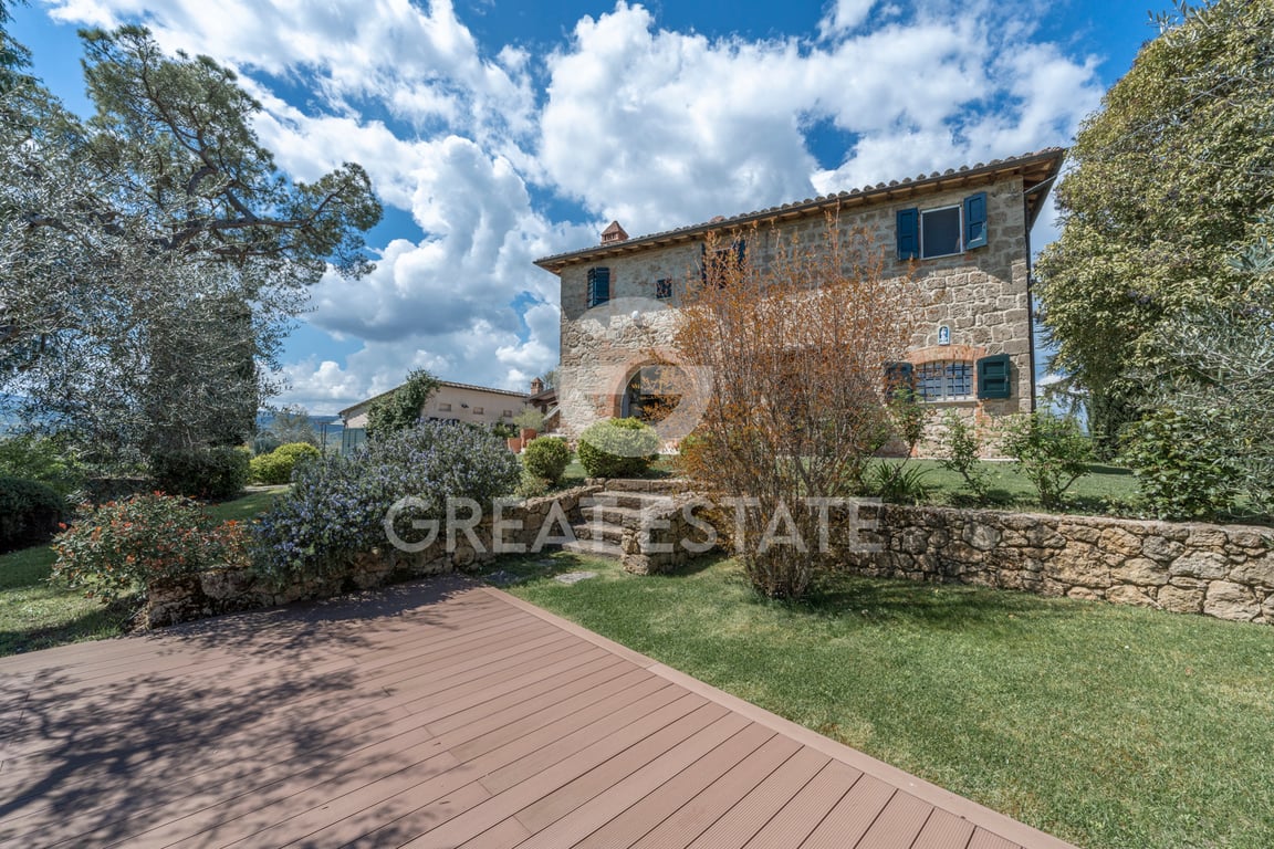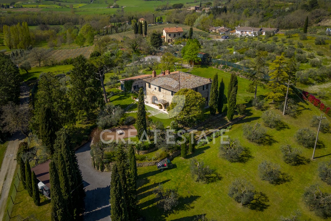 "Podere Poggio Olivo" is a property consisting of a manor house, a charming outbuilding, a small agricultural annex and a private park of almost 1 ha. perfectly maintained surrounding and embracing the entire property. The main house develops a surface (gross living space) of about 315 sqm. located on two levels and internally so arranged: on the ground floor we find, in addition to the main entrance, the open plan living area consisting of a bright living room, a dining room, a living room with...