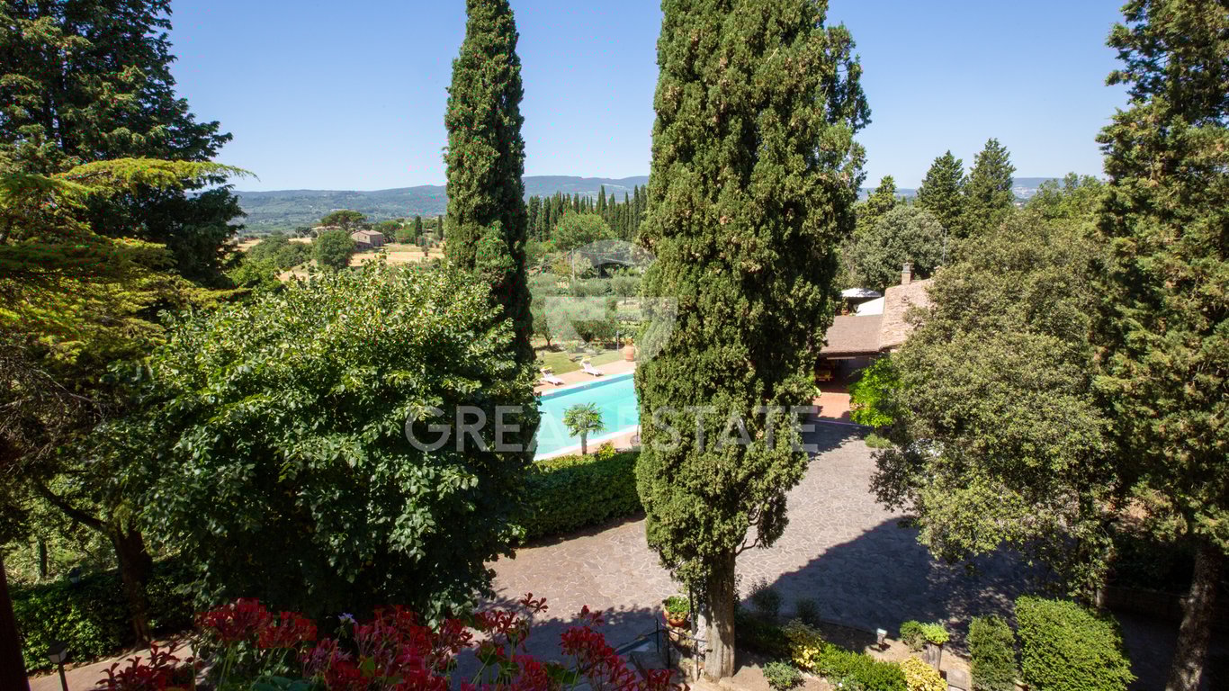 Historical villa in Tuscany, “Il Parco Secolare”. The exclusive property has a total covered area of approximately 970 square meters and consists of a period villa in Art Nouveau style on 3 levels, an outbuilding, ancillary rooms, a large garage. 3 levels, from an outbuilding, ancillary rooms, a large garage. The buildings are embellished by a majestic tree-lined park of about 1 ha. where there is an important entrance avenue with centuries-old cypresses, green and ornamental areas, the courtyar...
