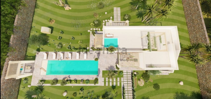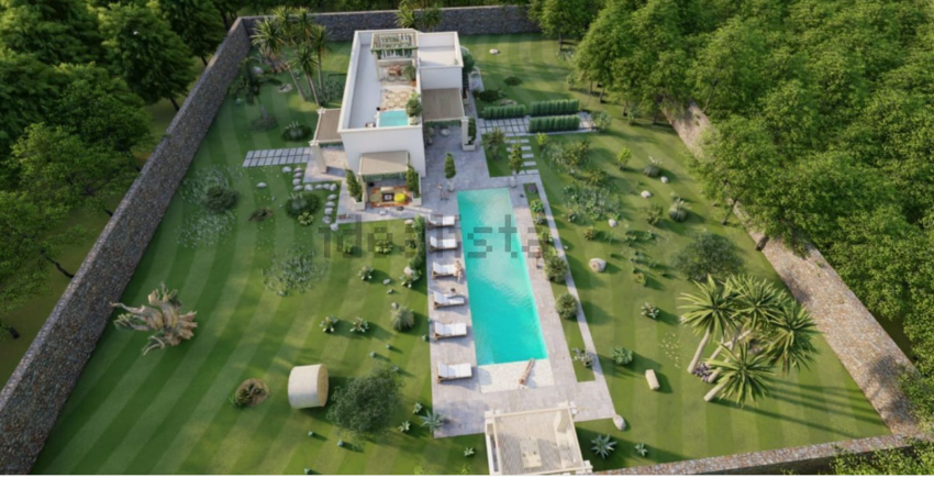 The land is of about 8,800 square meters, mainly flat, with approx. 25 olive trees, even secular ones, almond, fig and pear trees perfectly in production. The approved consists of a 3-double bedroom and 3-bathroom villas, including a 64 sq m swimming pool. By presenting a modification of the project, it is possible to create a veranda/conservatory for a further 50 sq m. Additionally, a nearby lot of land is available for sale measuring 1,2 hectares (3 acres) where it would be possible to build a...
