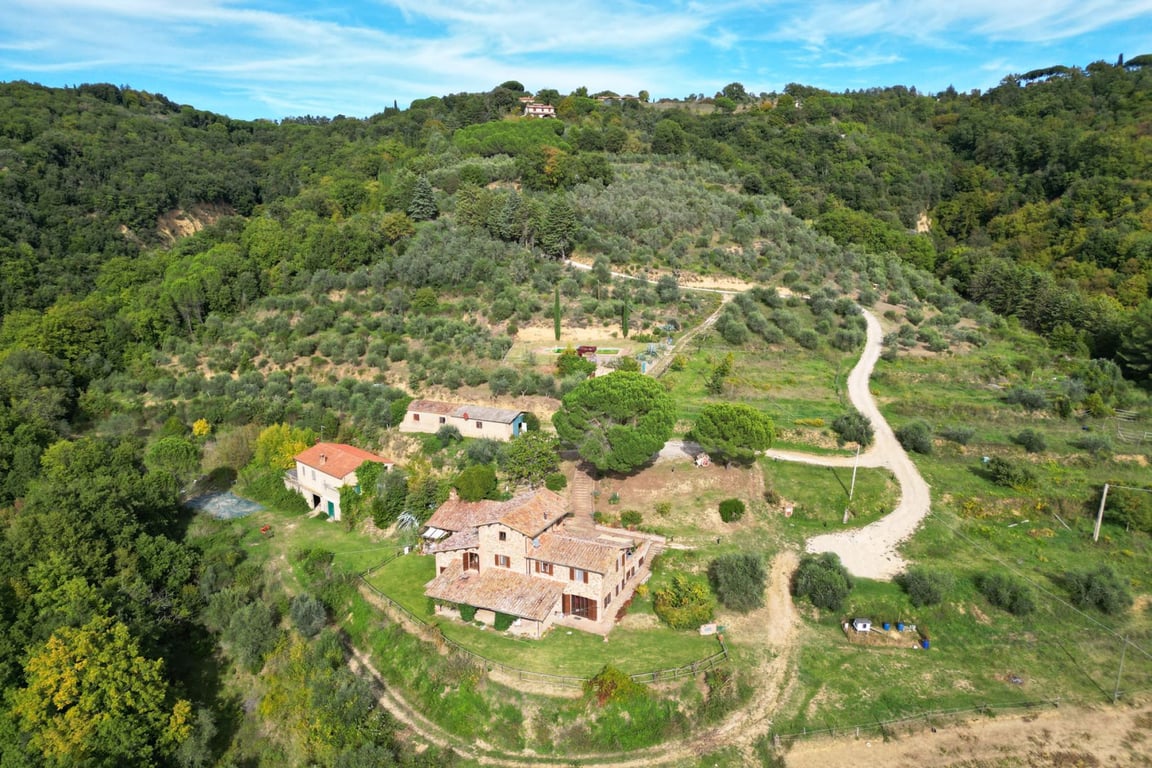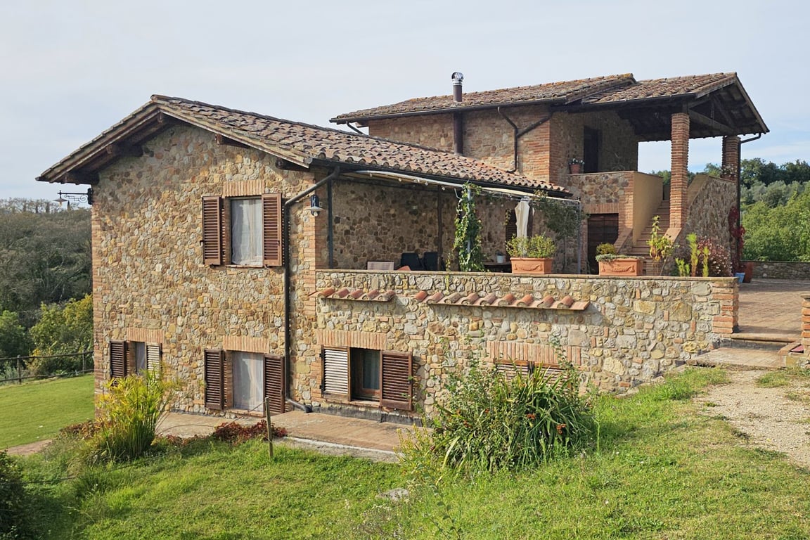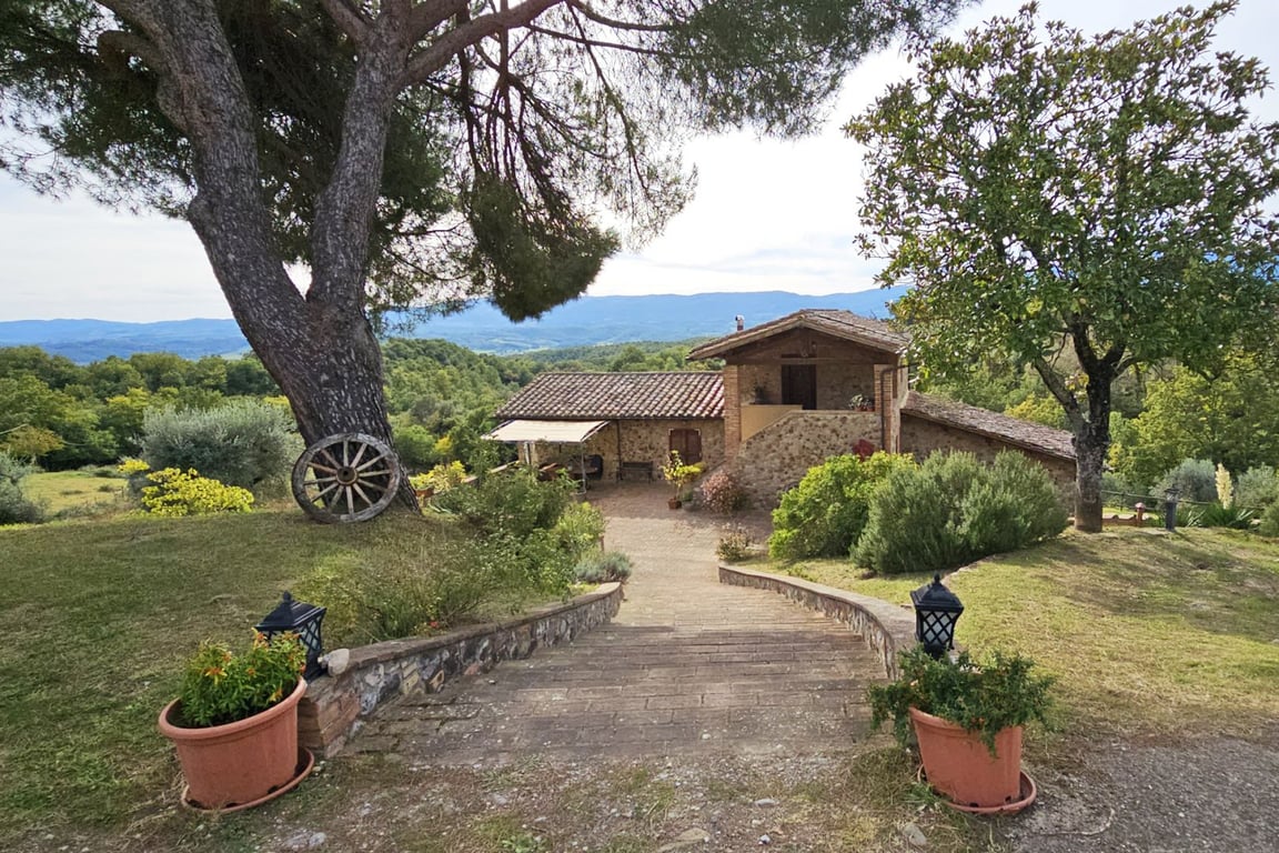 Nestled in the countryside of Città della Pieve, in an extremely quiet and panoramic location, this farmhouse of approximately 890 sqm with swimming pool and garden stands out for its division into independent flats, perfect both as a private residence and for accommodation purposes.On the first floor there are four flats: the first with a bedroom, living room with kitchenette and bathroom; the second with a large living area with kitchenette, two bedrooms, a bathroom and a storage room; the thi...