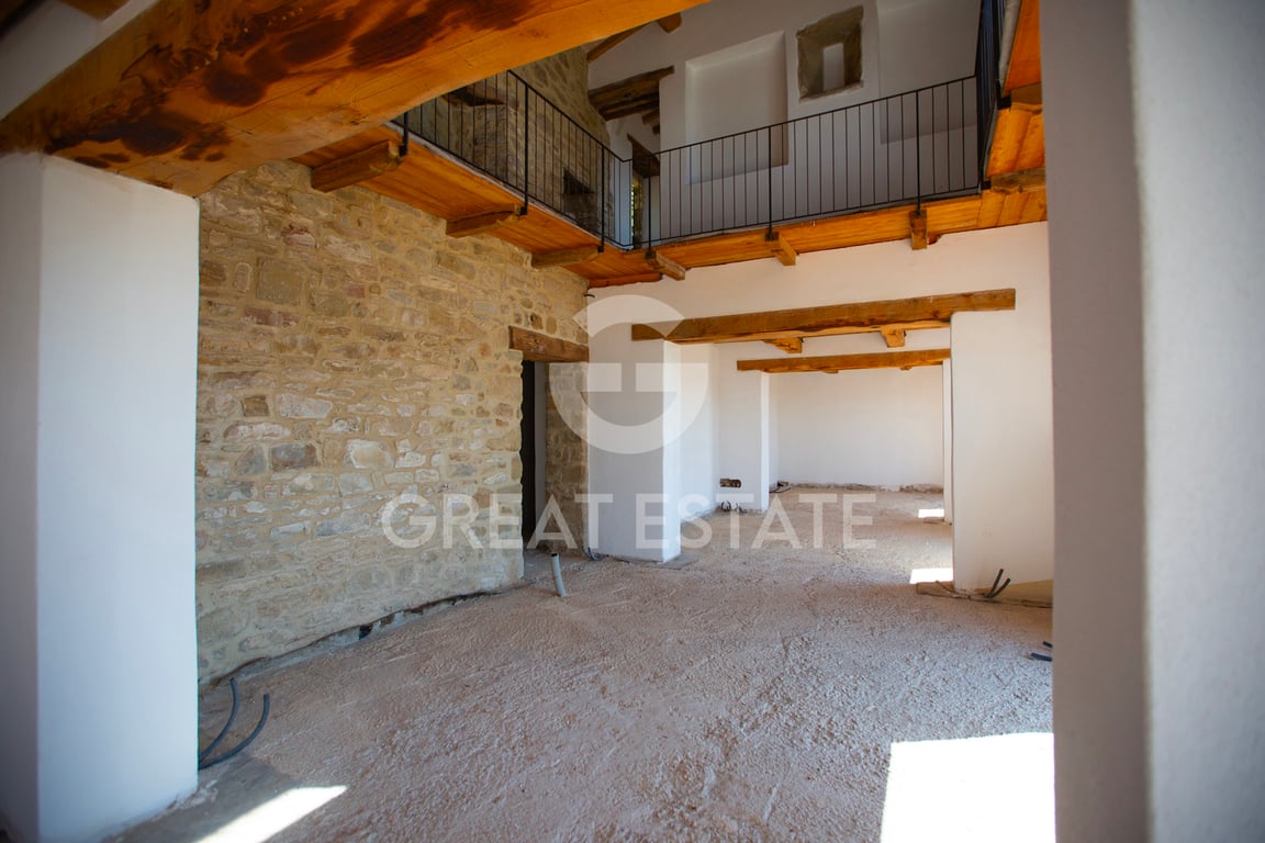 Casale la Valle is located in a fantastic place, in a dominant position and in harmony with the surrounding environment. The property stands within the wonderful landscape context of the Umbrian countryside. The farmhouse covers an area of approximately 440 sqm spread over 2 levels and internally arranged as follows: On the ground floor a wonderful living area with a particular ceiling in the center in which a gallery corridor has been installed which follows the four walls, on the first a liv...