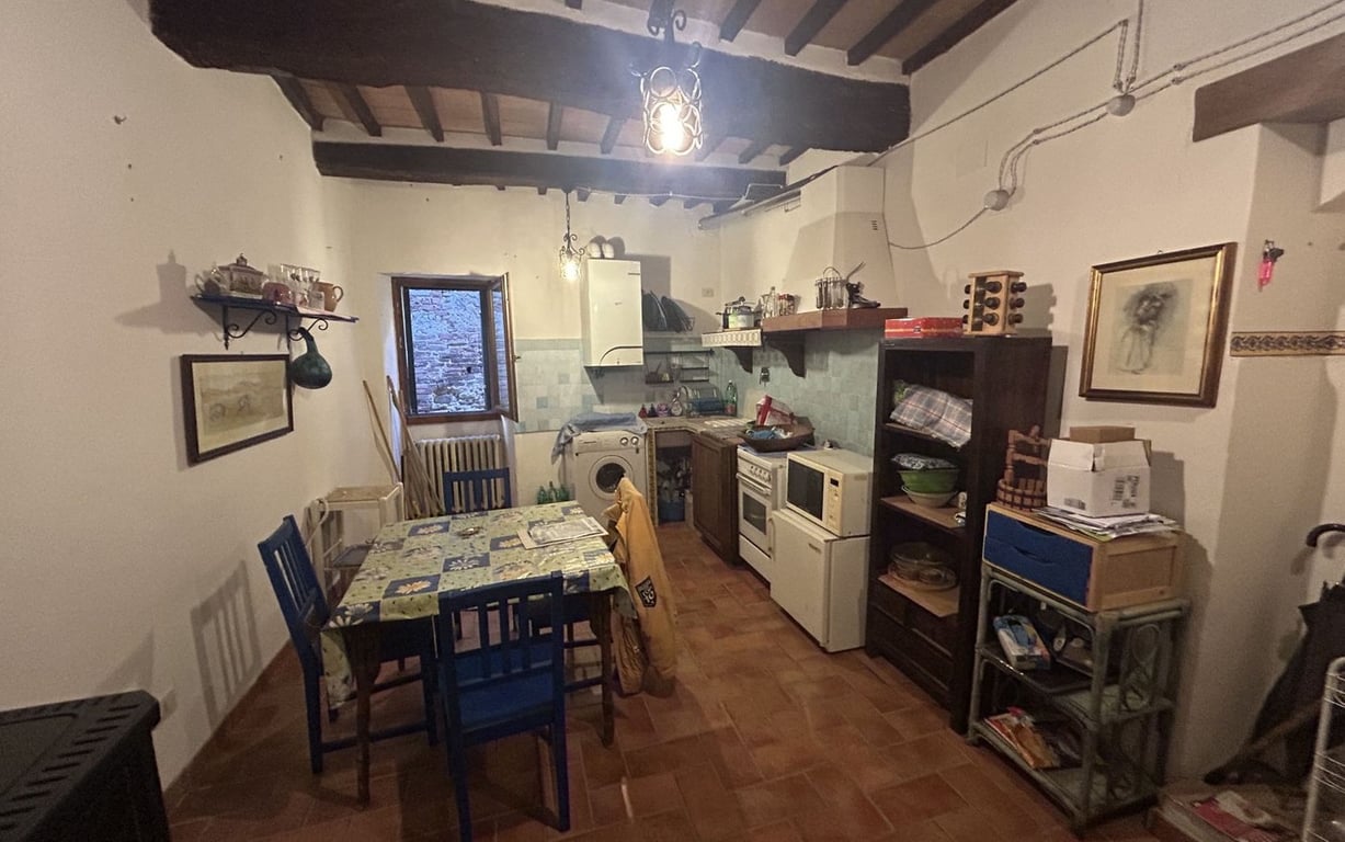 Within the hamlet of Collepepe, in an ancient building, a flat with independent entrance on three levels for a total of 80 square metres, completely renovated.The living area consists on the first floor of a living room with kitchenette and fireplace and on the second floor of two double bedrooms, one of which has an en suite bathroom, a large bathroom with shower, and small terraces.On the ground floor, with double entrance, one of which is independent from the outside, a large cellar that coul...