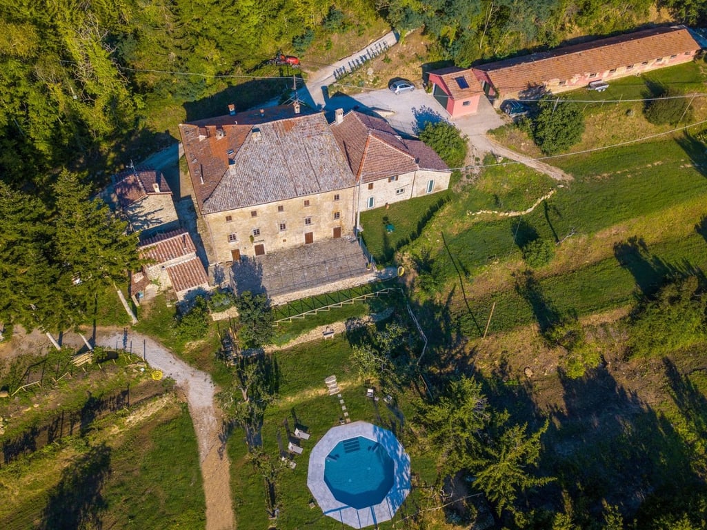 In the heart of the Cortona countryside, in a private and panoramic position, we offer for sale a prestigious estate of approximately 1,570 sqm in total, currently used as an agritourism with a restaurant, set within 68 hectares of private land.The complex is divided into several buildings, harmoniously distributed within the estate.The main building houses the master apartment of approximately 292 sqm, spread over two floors, characterized by large, bright rooms finished with high-quality mater...