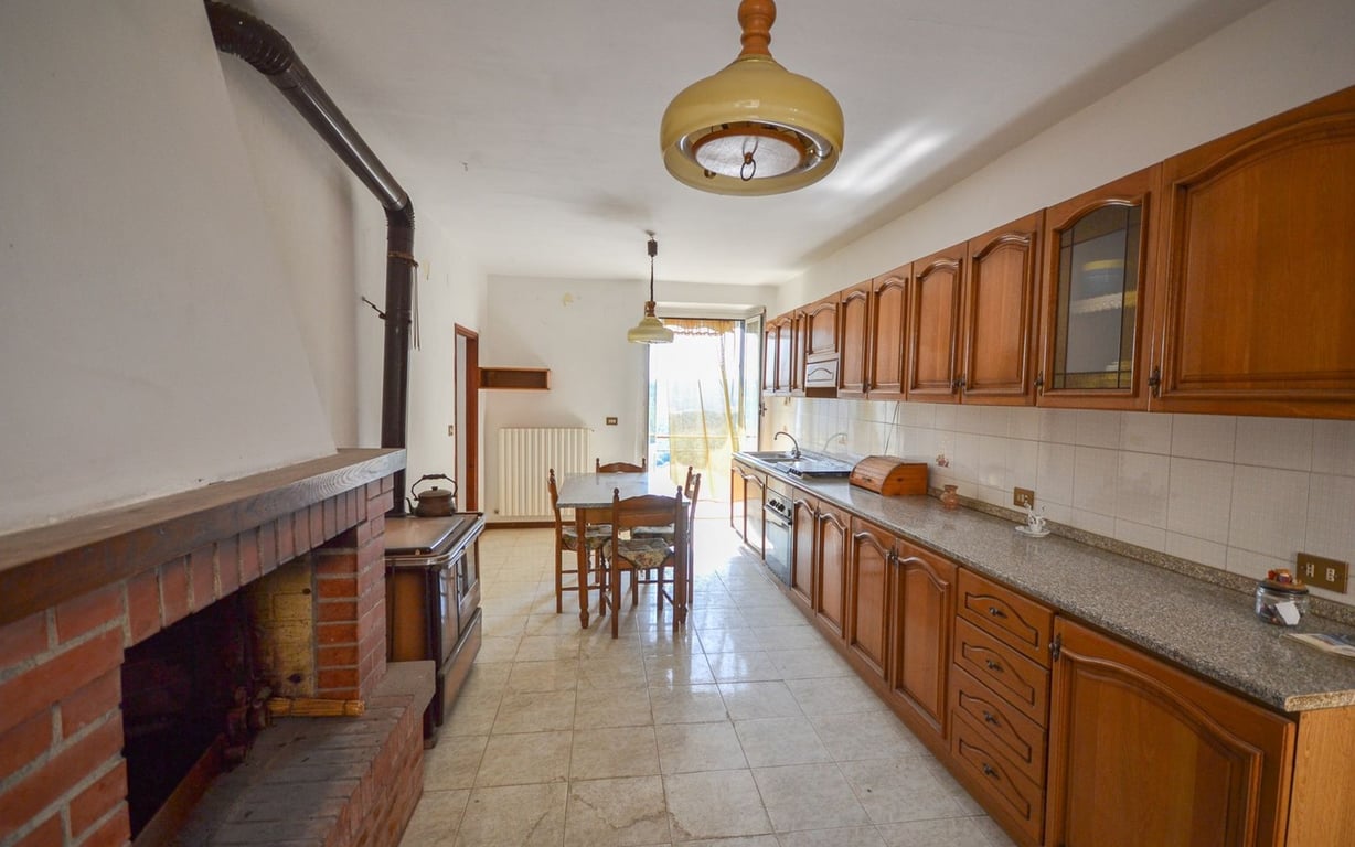 Centrally located with a panoramic view of the valley, townhouse with balconies and garageThe property is divided into:Ground floor: kitchen with balcony, dining room and bathroom;First floor: three bedrooms, bathroom and balcony.The property includes cellar and garage in the basementHabitable. Very bright