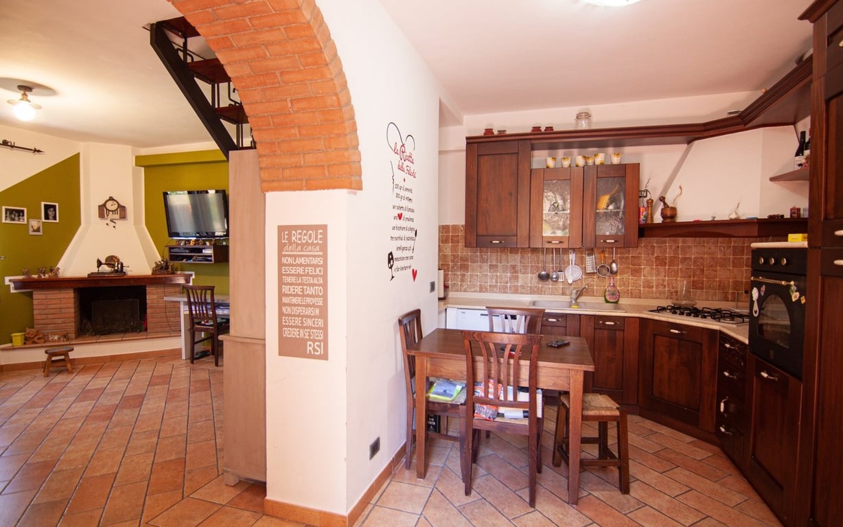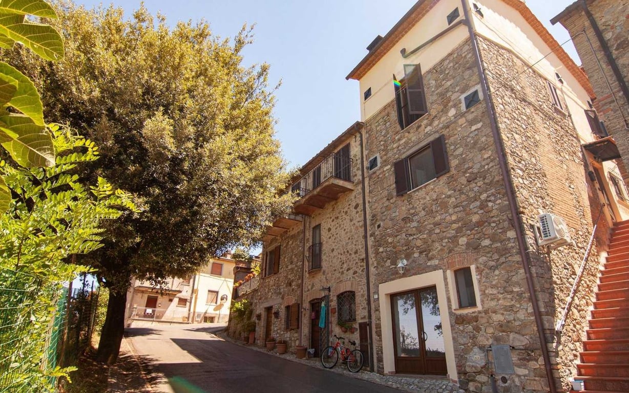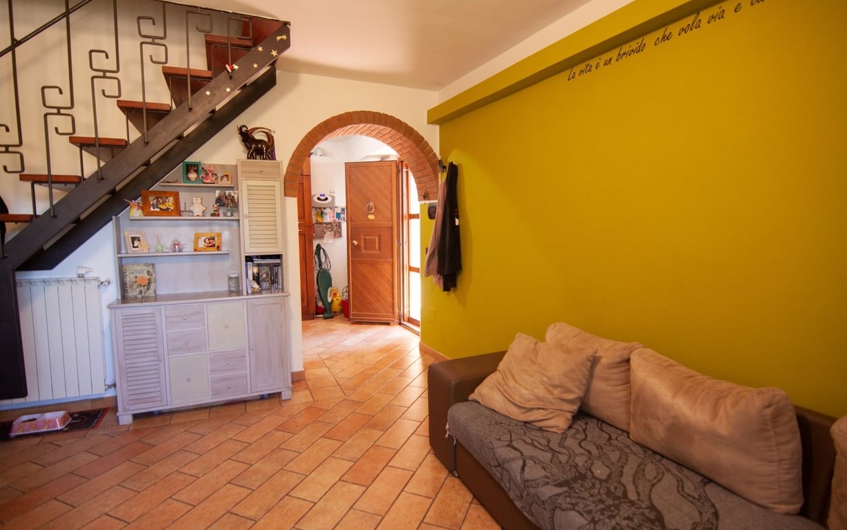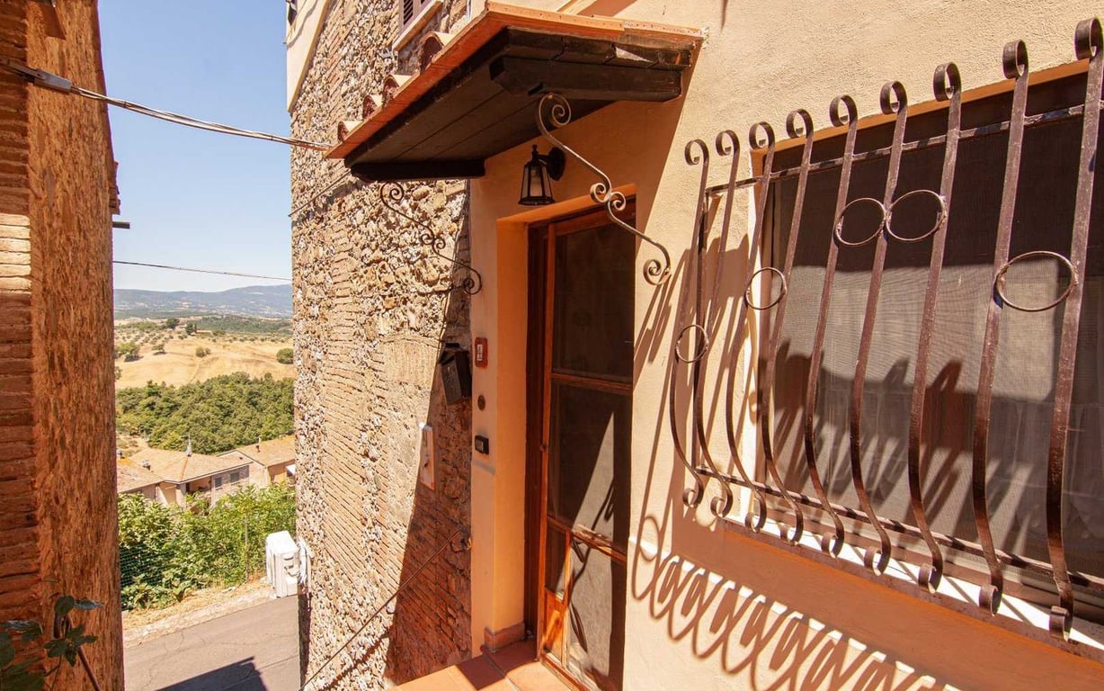 Along the walls of the lovely Medieval village, walking distance to all amenities, restored townhouse totalling approx. 130 sqm divided as follows:Basement floor: studio apartment with independent entrace from the main street, of approx. 26 sqm with kitchen corner, bathroom with shower and mezzanine;Ground floor: kitchenette and living room with fireplace;First floor: two bedrooms and bathroom with shower;Attic floor: storage space/laundry with access to the rooftop terrace with open views of th...