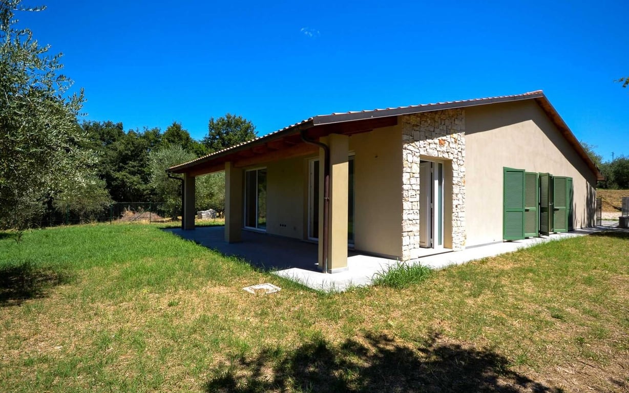 A recently built, Class A, earthquake-resistant detached house with the ECOSISM system, in a highly panoramic, private hillside location, easily accessible from Fabro Scalo and its amenities.The property is spread over one level and boasts comfortable spaces and bright rooms.The large, panoramic porch has large windows leading to the living room with a kitchenette featuring a large wall of windows and a fireplace/stove. The sleeping area consists of two double bedrooms, a single bedroom, and two...