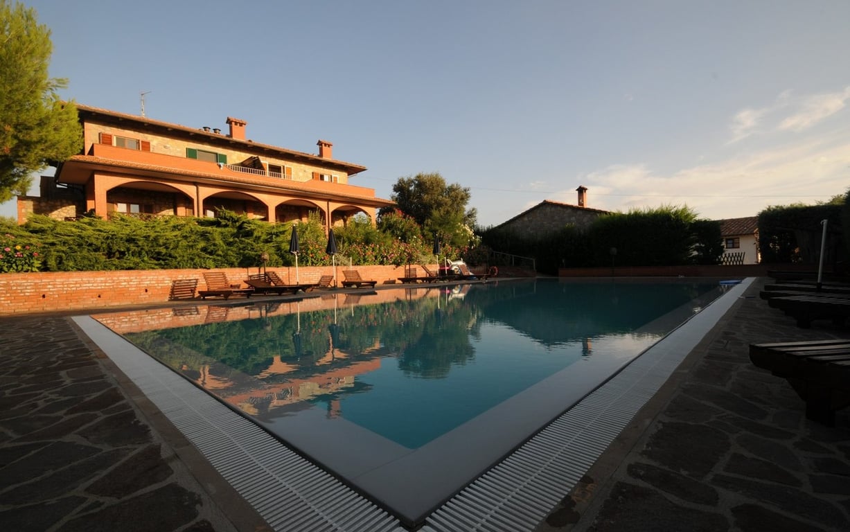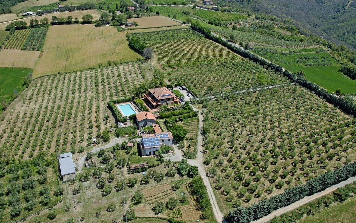 Organic agricultural and agritourism business with pool in very panoramic position with easy access, not far from services. The complex consists of various buildings with five apartments in total used for the agritourism, a main dwelling used by the owners, cellar and various outbuildings. It is surrounded by 6 hectares of agricultural land, fully fenced in. Everything ORGANIC and certified! The main farmhouse, which measures approx. 300 sq.m., is arranged over 2 levels with two apartments on ea...