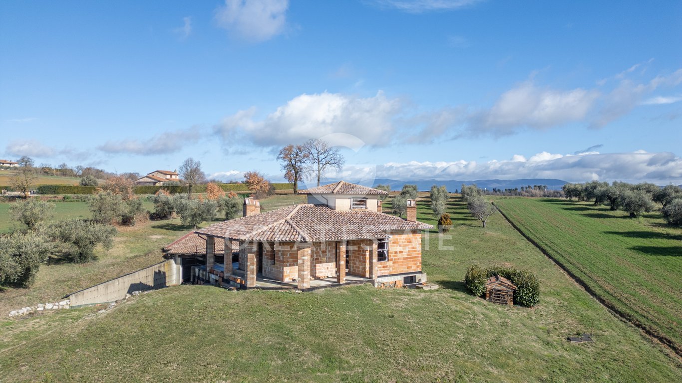 The farmhouse, currently in its unfinished shell state, is arranged over a ground floor and a waterproofed basement level, in addition to a splendid panoramic turret. The external portico, featuring wooden beams and extending along three sides of the property, allows for an expansion of the living area during the warmer seasons. Overall, the residence measures approximately 400 sq m: 180 sq m on the ground floor, including the portico, and 220 sq m in the basement level. The surrounding land,...