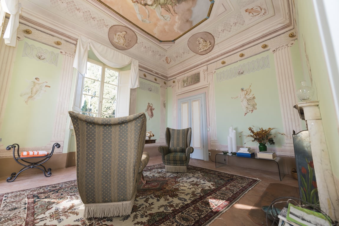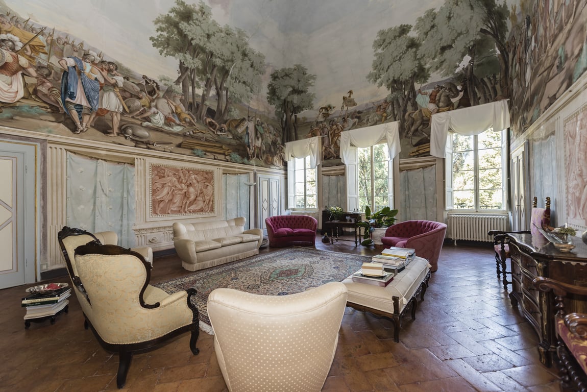 For sale noble villa set in the centre of a cute village at the top of a hill in Pisa province. The village enjoys a dominant and strategic position because in half an hour it is possible to reach Pisa international airport, in 40 minutes the closest beaches, Florence is 75 km distant and Lucca 65. It is a three storey 1520 sqm gorgeous villa with 1 ha of garden completely fenced. The property boasts amazing frescos which date back to the 1700s. The heating system is both with natural gas and L...