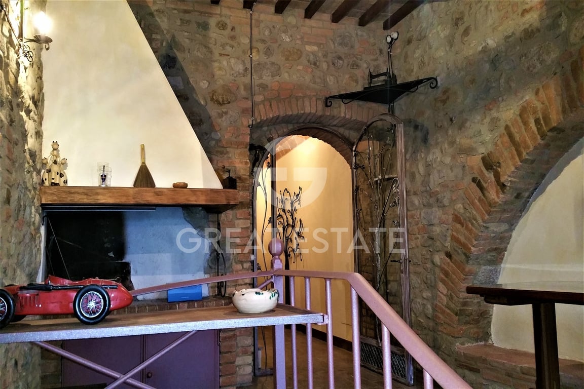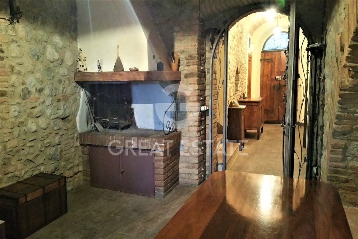 Historic center for sale with two apartments, one of which is finished and completely habitable. In a small building with an exclusive entrance, near the characteristic fortress of the town and with one side facing the beautiful panorama of the Umbrian and Tuscan countryside, we have this interesting independent town center of over 300 sqm on three levels with beams, brick vaults, terracotta and ancient stone + cellars below with natural cave dug into the tuff. the property is composed as follow...