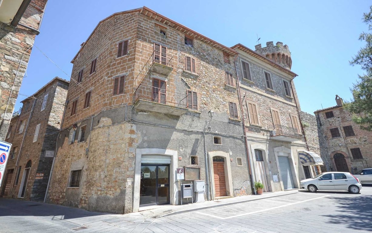 Along the walls of historic centre, next to the main access, large palazzo of approx. 350 sqm arranged on five levels, currently divided in two living units, and composed as follows:Basement floor: large grotto;Ground floor: Two cellars, large woodshed and business premise used as office;First floor: apartment divided in large living room with fireplace, kitchen corner with dining area with panoramic balcony overlooking the valley, two double bedrooms, on of which with access to the upper floor,...