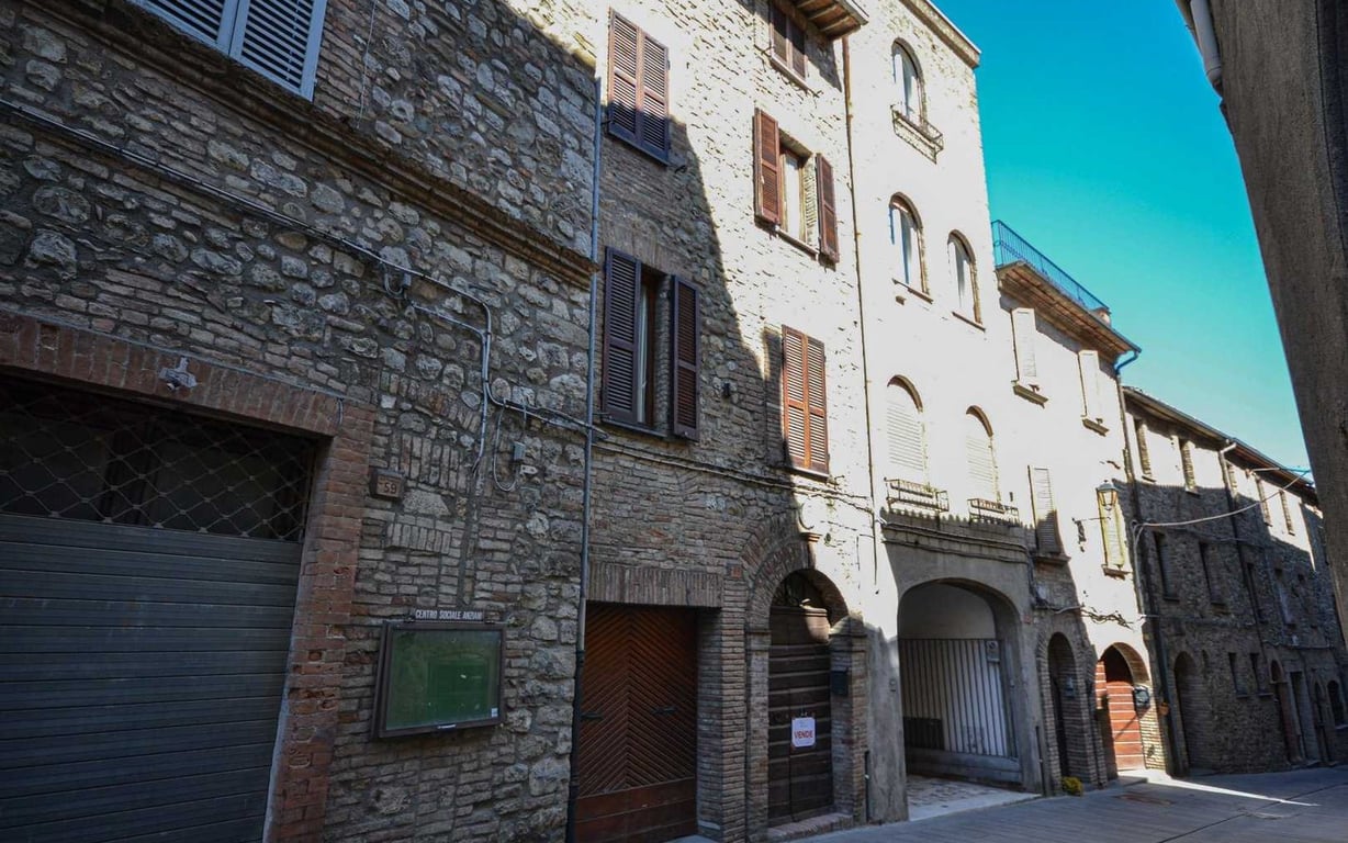 In the historic centre of Ficulle, centrally located townhouse on 4 levels plus typical grotto in the basement, divided in:Ground floor: garage and access to the cellar in the grotto;First floor: large living area with kitchen and living/dining room with fireplace;Second floor: double bedroom and bathroom with tub;Third floor: two bedrooms.The property is habitable and well-maintained. Independent heating system on gas.