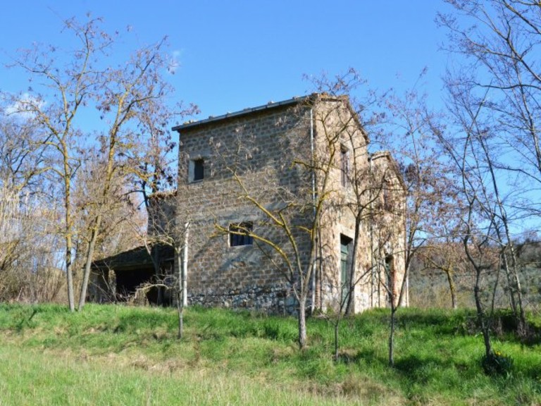 In hilly location, close to the historic centre of Ficulle, independent farmhouse of approx. 120 sqm on two levels divided in garage, two large cellars and two store rooms on the ground floor; kitchen, corridor, two double bedrooms, single bedroom, bathroom and store room on the first floor.The property includes agricultural outbuilding that needs to be restored and surrounding land of approx. 1 hectare. Possibility to purchase more land. Energy Rating G.