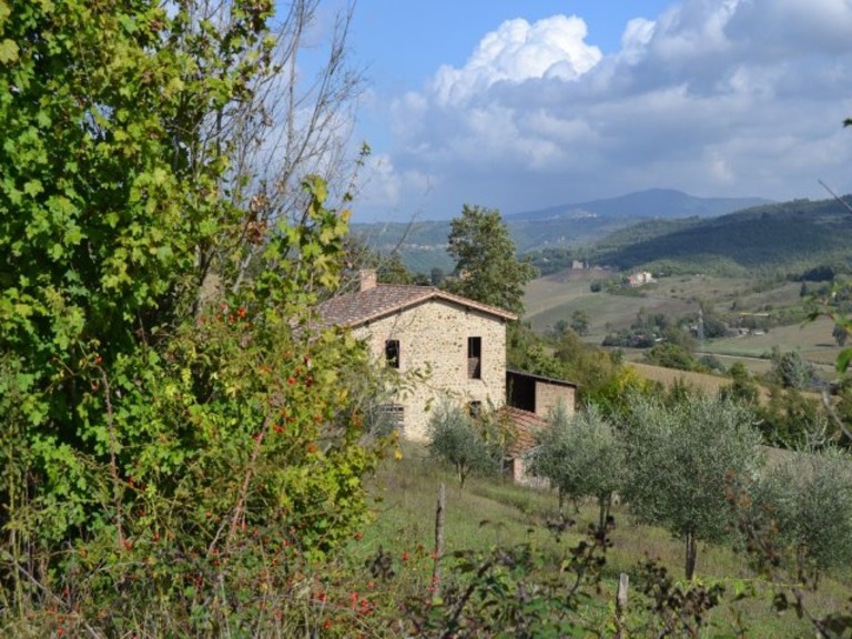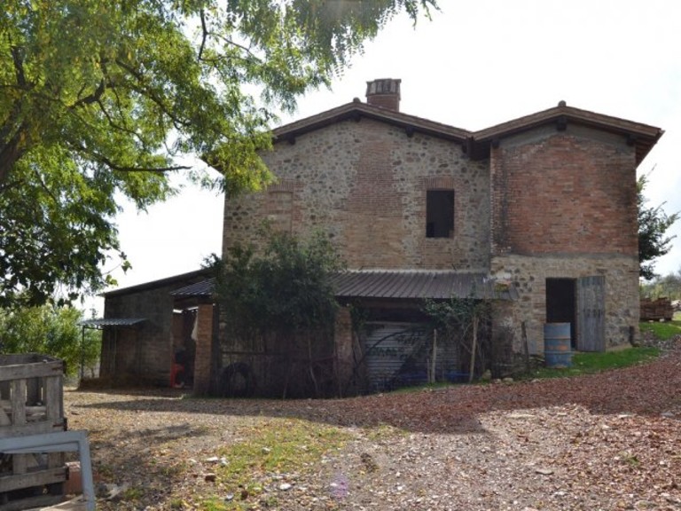 In hilly and very panoramic location with open view on the valley is this detached farmhouse with outbuilding and agricoltural land of approx. 3 hectares.The property is on two levels totalling approx. 260 sq.m. divided as follows:Ground floor: two large former stables with high vaulted ceilings, cellar with grotto and two storages;First floor: farmer's apartment divided in kitchen, large living room with fireplace, two bedrooms, store room, room to create bathroom.The farmhouse was recently str...