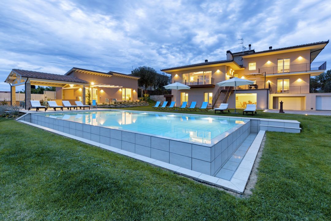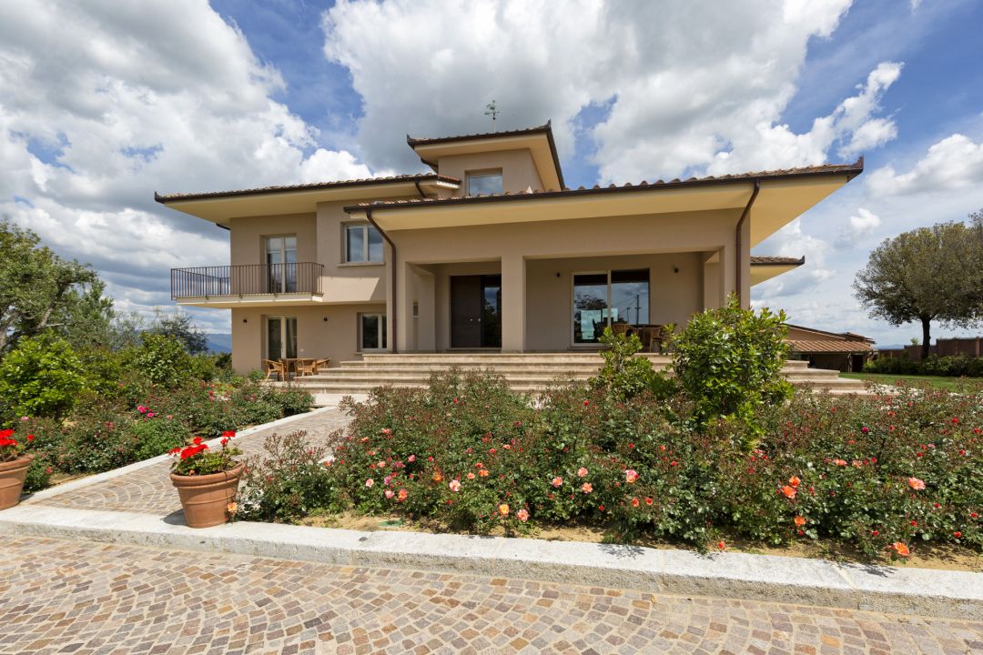 For sale in the Tuscan countryside, in the province of Arezzo, modern luxury villa with dèpendance and large land with olive grove.The villa equipped with all the latest comforts, was built with innovative techniques that ensure excellent energy efficiency.The villa is on three levels, totaling 740 and has 6 bedrooms and 9 bathrooms.Basement level has two bedrooms with en-suite bathrooms, living - dining room, kitchen, lemon house, laundry, guest bathroom, gym, large garage and technical room;Gr...