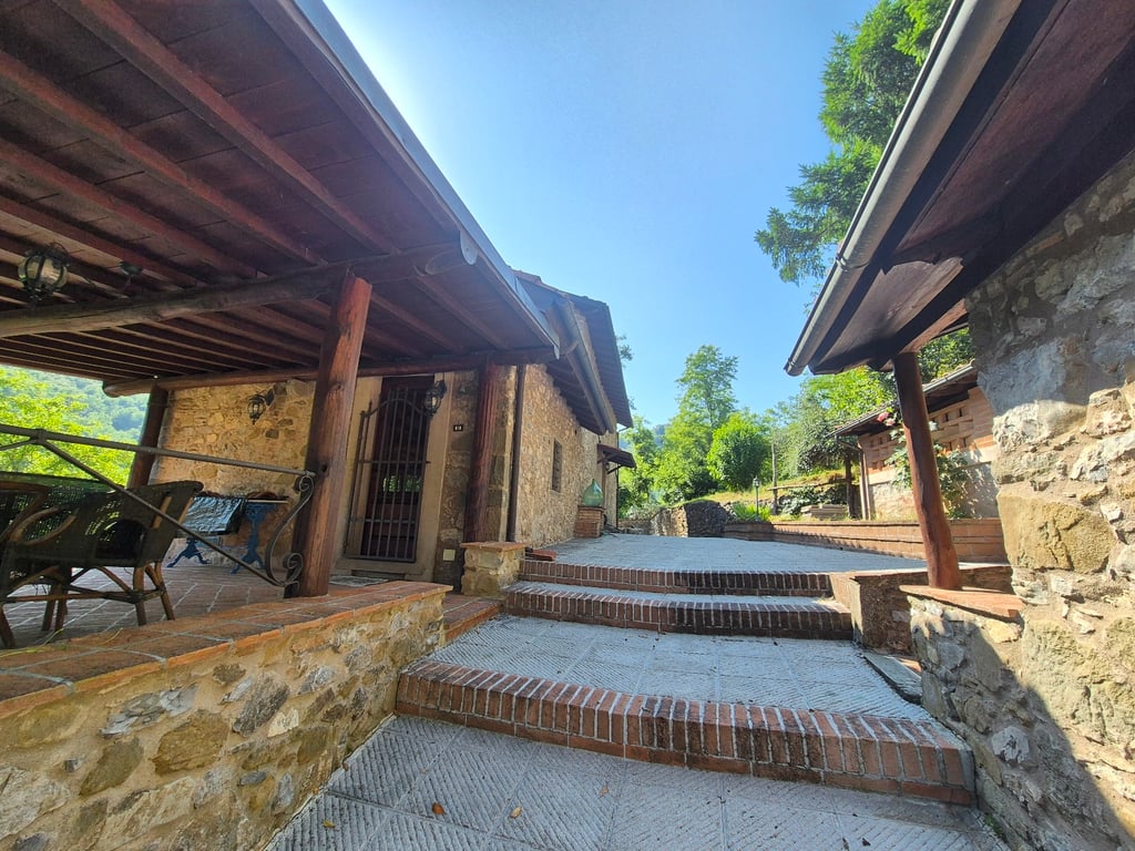 Farmhouse in Tuscany Immersed in the greenery of the middle Serchio Valley, this splendid home has been completely renovated respecting its original features and using local materials. Enjoy the tranquility of the countryside with the convenience of easy vehicle access. Spaces and Features The farmhouse offers large spaces distributed on several levels: Covered Car Park Entrance Gate to the Garden Access to the House by Steps Large Front Yard Coverd Terrace with access to the Kitchen 3 Tool...