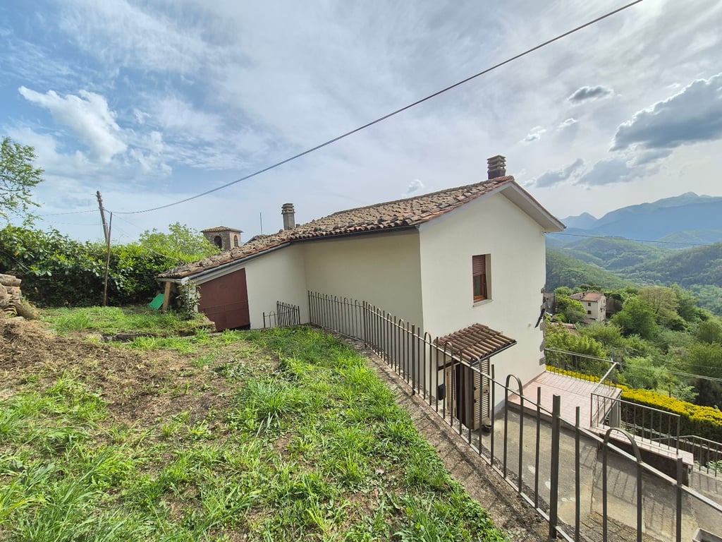 Semidetached Village Houseon three levels with private garden , 60sqm, overlooking the Apuan Marble Mountains. Two terraced gardens of approx 100 sqm and eating out terrace with fantastic views. Oil Central heating .Connection ready for Town Gas . Ready to move in. Easy access and close parking. Ground Floor Access to the house by pathway. Entrance Hall Marble staircase to first Floor 1 Dining Kitchen 1 Living Room Second Floor 2 Double Bedrooms 1 Bathroom with Bath Tub Lower Level 2 ...